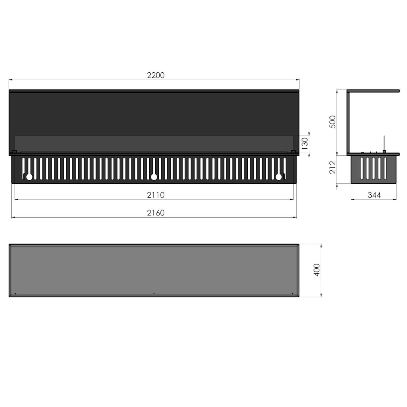 Als C-förmiger Elektrokamin Einsatz mit Panorama-Design bietet dieses Modell eine eindrucksvolle 3-seitige Feueransicht. Mit einer Gesamtbreite von 220 cm gehört dieses Modell zu den größten Panorama-Wasserdampfkaminen und sorgt für ein außergewöhnlich beeindruckendes Flammenerlebnis über die gesamte Breite. Ideal für exklusive Wohnwände, große Cinewalls, Architekturprojekte und luxuriöse Innenräume.