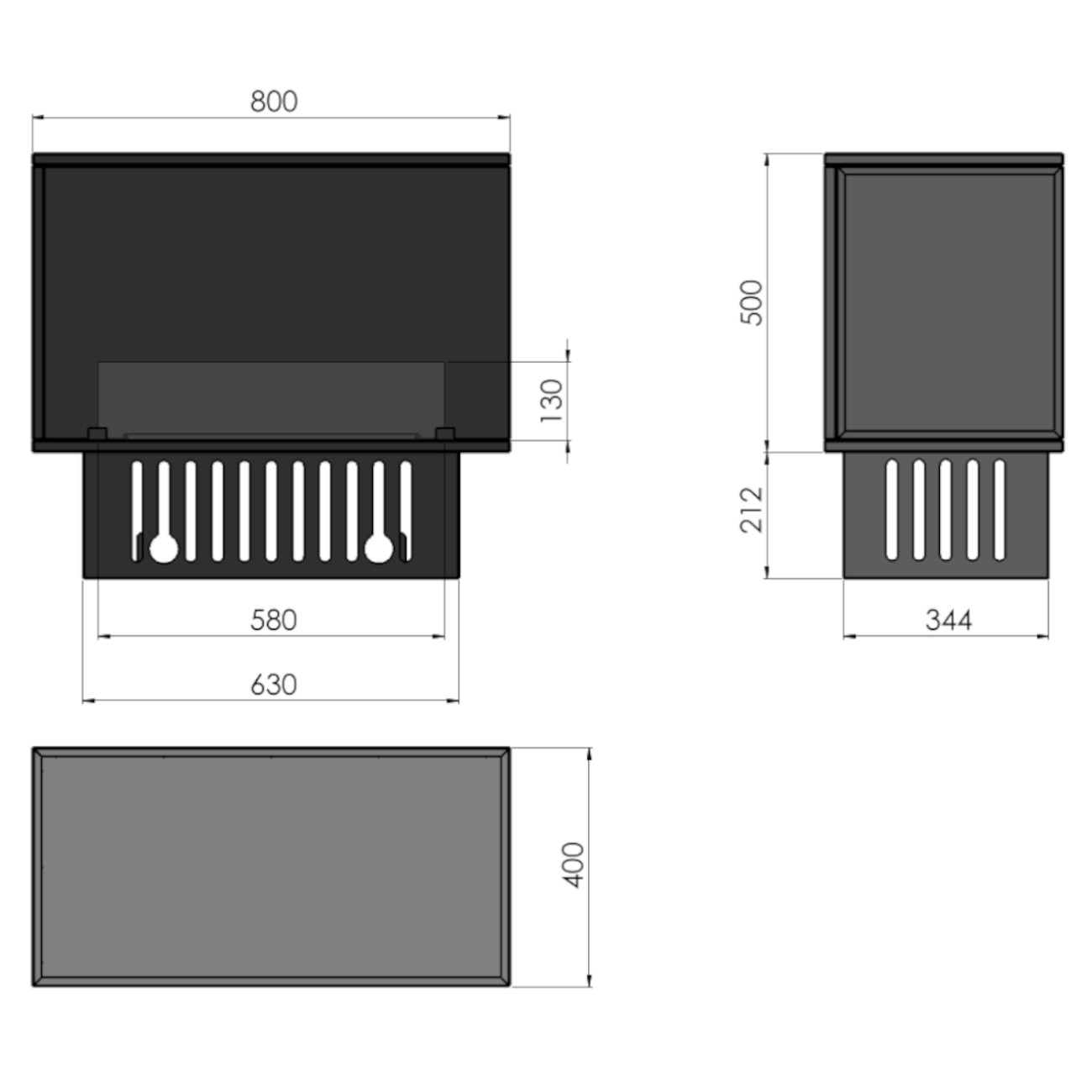 Abmessungen: 800 x 400 x 500 mm (+212 mm)