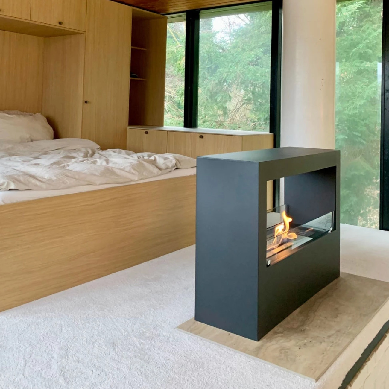 Mit seiner klaren, rechteckigen Form und der großzügigen Flammenbreite wird der Lansing L zum architektonischen Highlight in großen Räumen und sorgt für eine besonders gemütliche Atmosphäre.