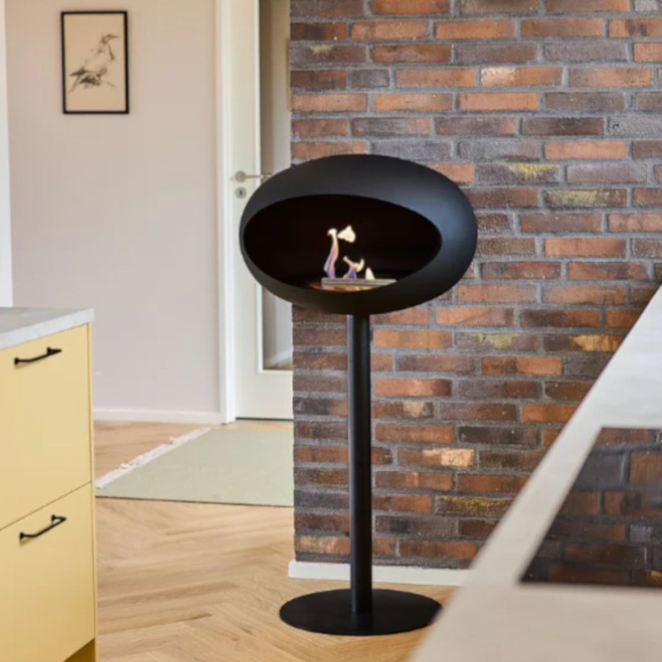 mit einem freistehenden Bioethanol-Kamin, der Design und Funktion perfekt vereint.