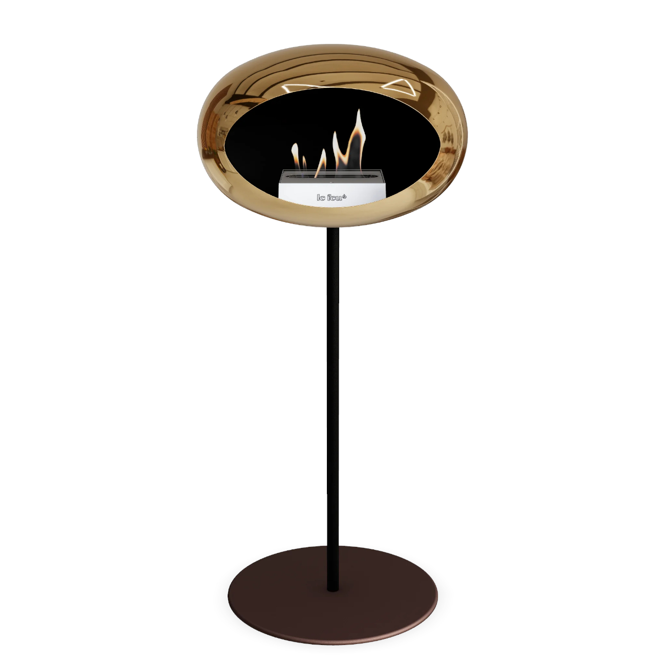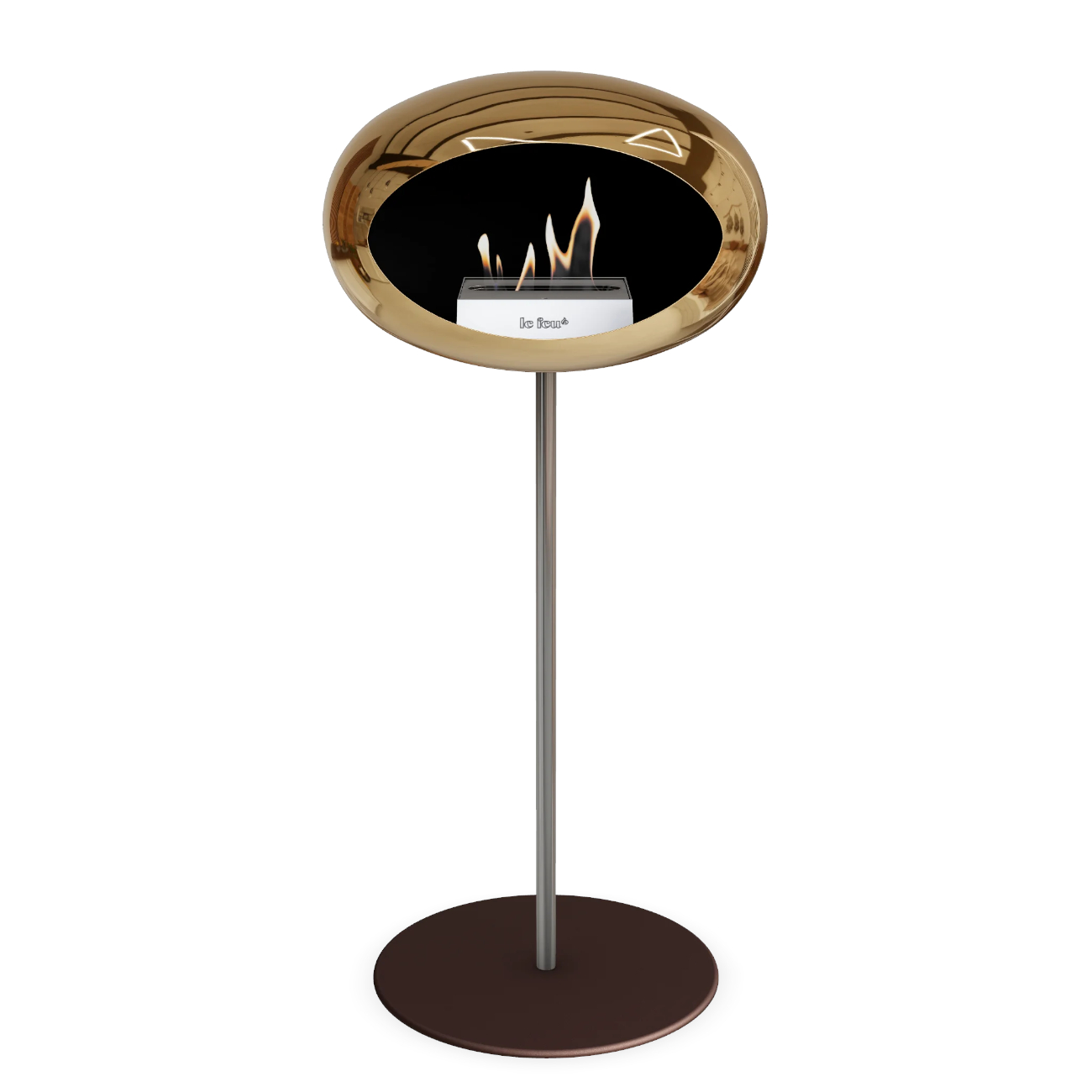 Die stabile 80 cm hohe Stange und die massive Bodenplatte (Ø 45 cm) sorgen für sicheren Stand und eine filigrane Silhouette. Die rosé-goldene Kuppel fängt das Flammenspiel stilvoll ein und setzt edle Akzente. Alle Komponenten sind in verschiedenen Ausführungen erhältlich – für ein harmonisches Gesamtbild in Ihrem Interieur.