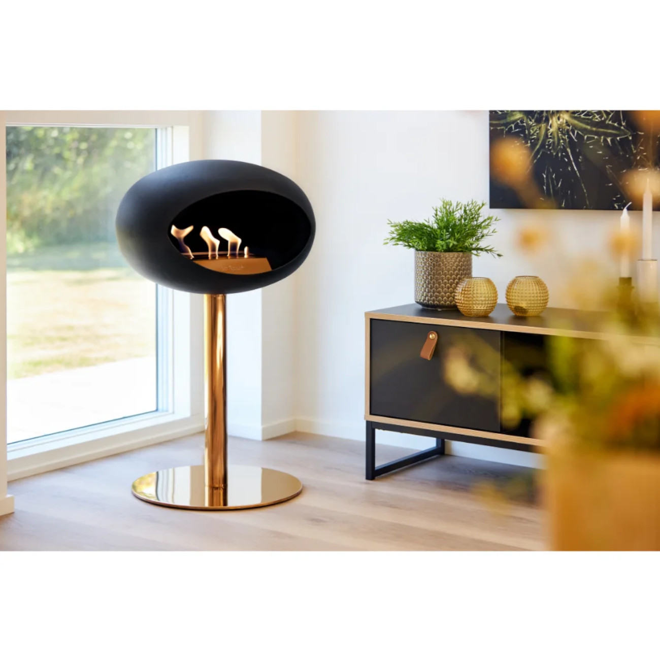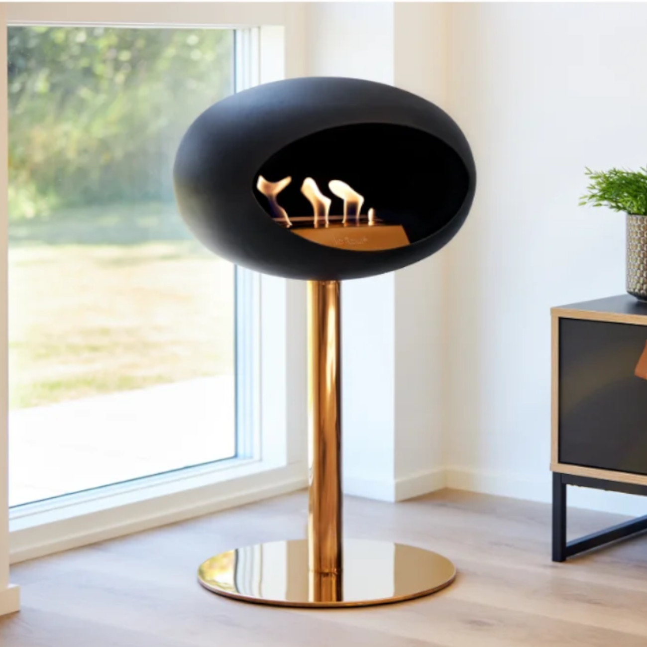 Die edle mattschwarze Kuppel, kombiniert mit der kräftigen Stange und der stabilen Bodenplatte, macht diesen Bioethanol-Standkamin zu einem stilvollen Designobjekt für moderne Wohnräume. Der Ground Steel Low Plus ist frei platzierbar und eignet sich sowohl für den Innenbereich als auch für den geschützten Außenbereich.