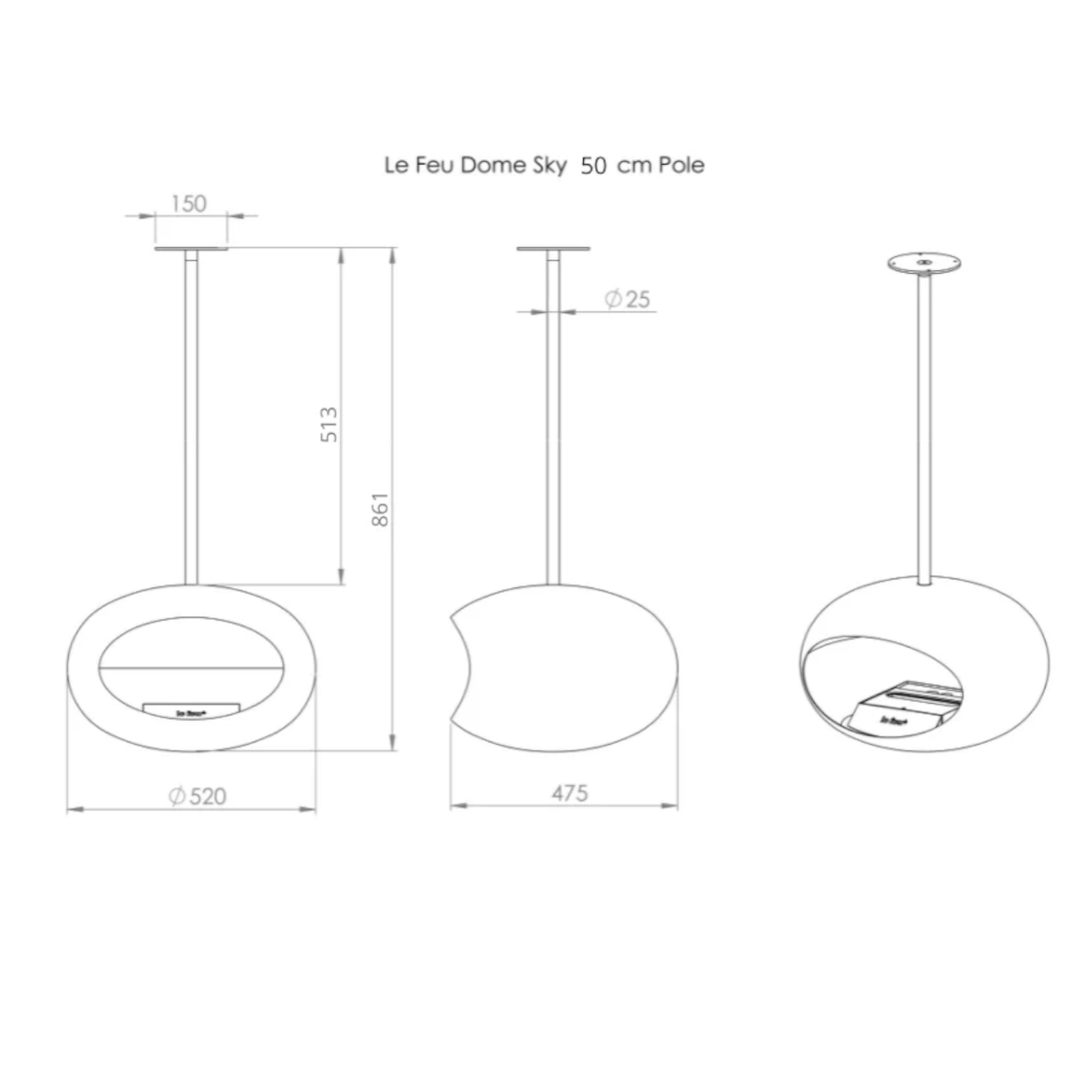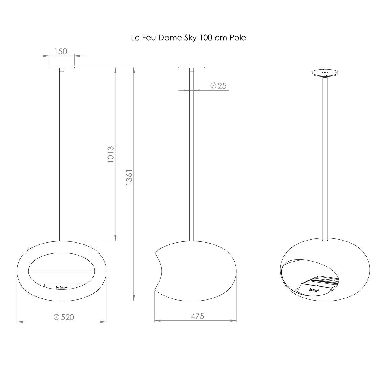 Le Feu Sky Silber Verchromt – Der schwebende Bioethanol-Kamin für stilvolle Räume mit Weitblick Der Le Feu Sky Silber verchromt ist mehr als nur ein Kamin – er ist ein exklusives Design-Highlight für anspruchsvolle Wohnräume. Durch seine innovative Deckenmontage scheint der Bioethanol-Kamin frei im Raum zu schweben und verbindet skandinavisches Design mit moderner Heiztechnik und nachhaltiger Wärme. Das elegante, elliptische Design in hochwertiger Chrom-Optik sorgt für einen edlen, zeitlosen Look. Dank 360°-Drehfunktion, variabler Höhenanpassung und hochwertiger Materialien wird der Le Feu Sky zum Mittelpunkt Ihres Wohnraums – ganz ohne Schornstein, Rauch oder Ruß. Warum der Le Feu Sky begeistert Wärmeleistung: ca. 2–3 kW für ein angenehmes Raumklima 360° drehbar – Flammenrichtung frei wählbar Fassungsvermögen: 1,5 Liter Bioethanol (mind. 95 % Reinheit) Brenndauer: bis zu 6 Stunden je Füllung Raumerwärmung: ca. 3–4 °C Umweltfreundlich & CO₂-neutral – kein Rauch, kein Ruß Indoor & geschützter Outdoor-Einsatz möglich Platzsparend & elegant – keine Bodenfläche notwendig SafeBurn-Brenner mit patentiertem Mehrkammersystem Kuppel aus hitzebeständigem Stahl mit verchromter Oberfläche Einfache Montage inkl. Benutzerhandbuch & Anleitung Optional: Winkelhalterung für schräge Decken Individuell anpassbar an Ihre Raumhöhe Der Le Feu Sky lässt sich optimal an Ihre Raumhöhe anpassen. Wählen Sie zwischen vier Stangenlängen (50 / 100 / 120 / 140 cm) oder kombinieren Sie diese flexibel bis zu einer maximalen Abhängung von 4 Metern. Die Deckenmontage ist in Schwarz, poliertem Stahl oder Rosé Gold erhältlich. Lieferumfang Le Feu Dome (Kuppel, ca. 14,3 kg) SafeBurn-Brenner (ca. 4,8 kg inkl. Frontplatte, Regelstab & Absperrklappe) Deckenmontageplatte (Ø 15 cm) 1 × Pole (Stange) Ihrer Wahl (Ø 2,5 cm) Inbusschlüssel & Montagematerial Benutzerhandbuch Optional erhältlich: Wetterfeste Schutzhülle für den geschützten Außeneinsatz – schützt zuverlässig vor Wind, Regen, Staub und Schmutz. Technische Daten Maße Dome: 35 cm (H) × 52 cm (B) × 49 cm (T) Gesamtgewicht: ca. 26,5–29,5 kg (je nach Stangenlänge) Wärmeleistung: ca. 2–3 kW Brennstoffverbrauch: ca. 0,3 Liter / Stunde Material: 2,3 mm S235 Stahl, hitzebeständig lackiert Brenner: SS304 Edelstahl & Keramikfaser Mindestabstand: Seiten/Rückseite 8 cm | Front 50 cm Skandinavisches Design trifft technische Raffinesse Als meistverkaufter Decken-Biokamin Skandinaviens steht der Le Feu Sky Silber verchromt für minimalistisches Design, Sicherheit und nachhaltige Heiztechnologie. Die patentierte SafeBurn-Technologie gewährleistet eine effiziente und kontrollierte Verbrennung. Ob über dem Esstisch, in der Lounge oder auf der überdachten Terrasse – der Le Feu Sky schafft Wärme, Atmosphäre und exklusiven Stil genau dort, wo Sie ihn genießen möchten. Le Feu – Wärme, die Stil hat. Entdecken Sie mit dem Le Feu Sky die elegante Art, nachhaltig zu heizen – rauchfrei, rußfrei und außergewöhnlich stilvoll.