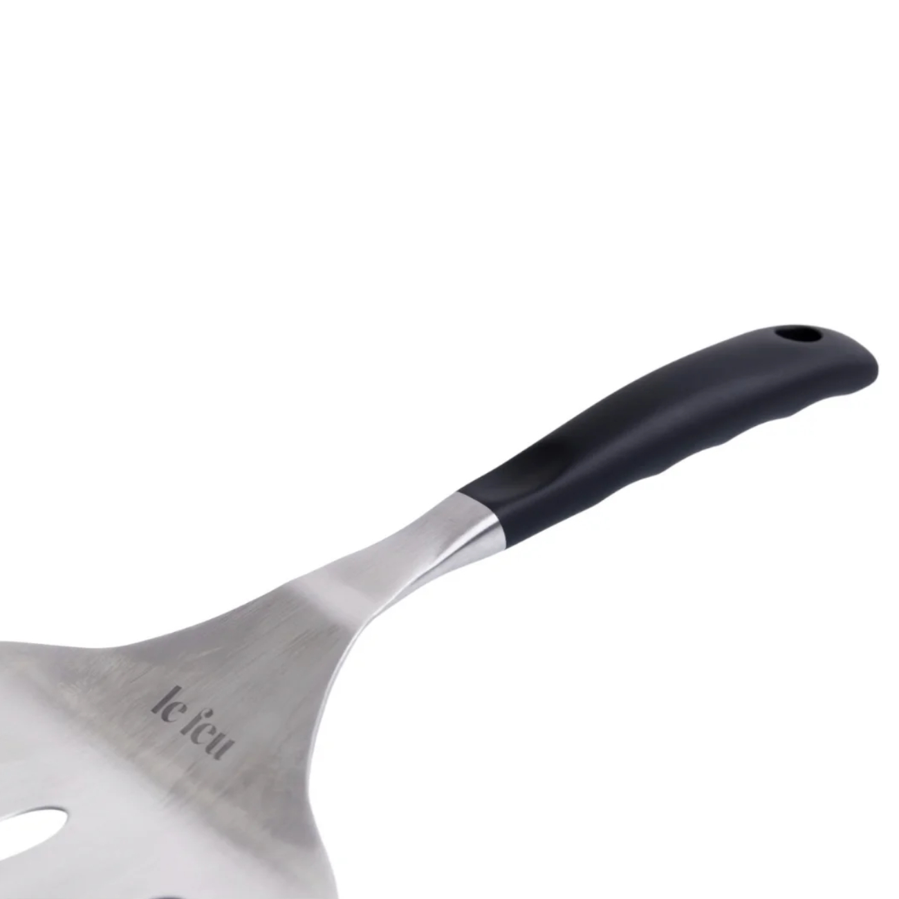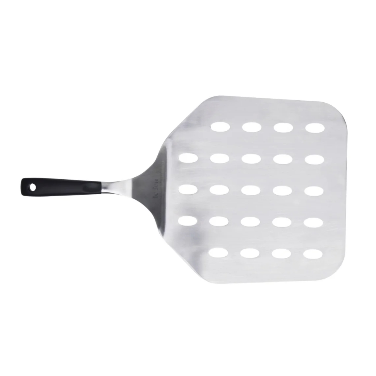 - Die perforierte Pizzaschaufel aus rostfreiem Edelstahl mit gummiertem Griff sorgt für ein sicheres Handling und verhindert überschüssiges Mehl auf dem Pizzastein.