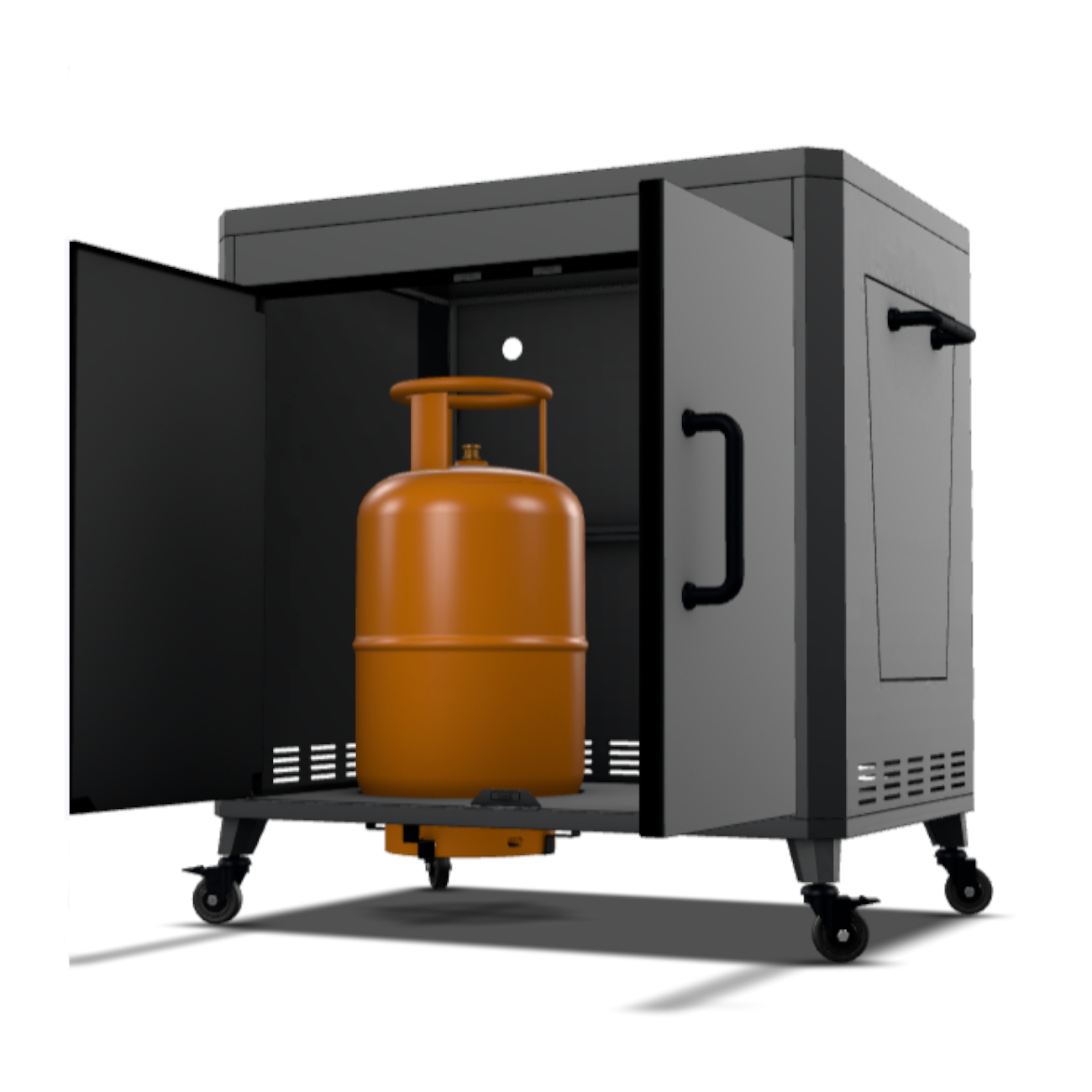 Alles im Griff: Die doppelwandigen Türen sowie der integrierte Stauraum sorgen dafür, dass deine Gasflasche elegant verschwindet und deine Outdoor-Küche aufgeräumt bleibt. Ein durchdachtes System für alle, die nicht nur backen, sondern genießen wollen.