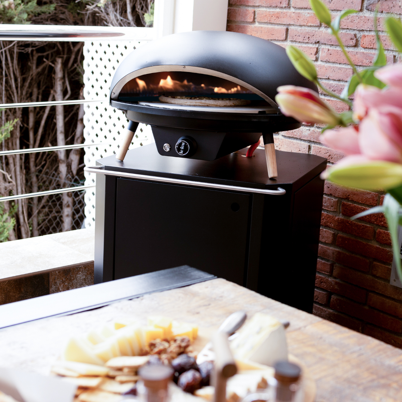 - Der abgestimmte Pizzatisch von Le Feu ist perfekt für den Turtle Pizzaofen geeignet - aus pulverbeschichteten Stahl und Ebenholz-Schneidebrett macht dieser das Outdoor-Pizzaerlebnis komplett. Mit einer ergonomischen Höhe von 95 cm, eine Breite/Tiefe von 66,3 cm, integrierten Haken, doppelwandigen Türen und Stauraum für Gasflasche & Tools – ein Must-have für jede Outdoor-Küche️.