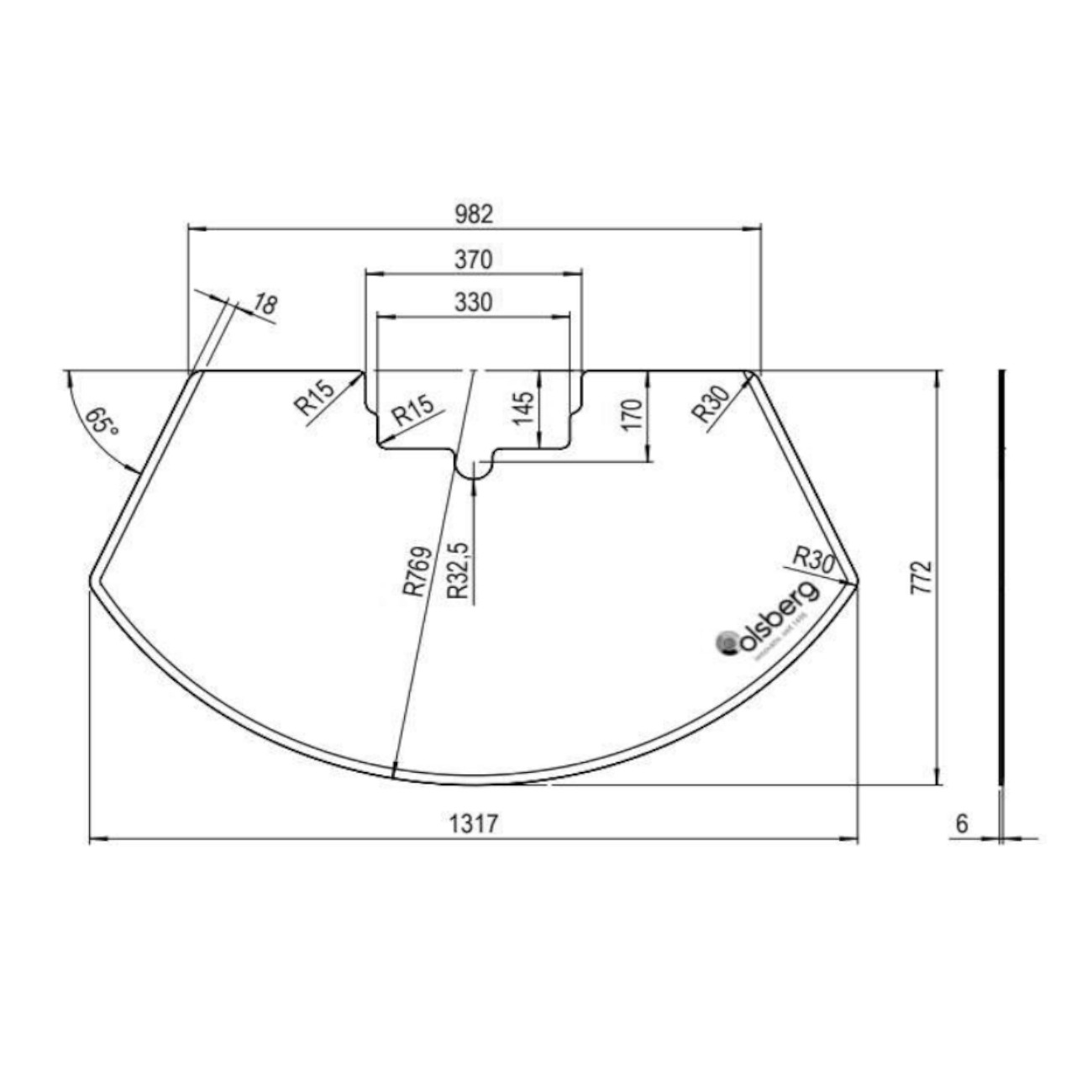 - Saison-Funkenschutzplatte 6 mm - 131,7 cm x 77,2 cm (mit oder ohne Fase + Olsberg Logo)