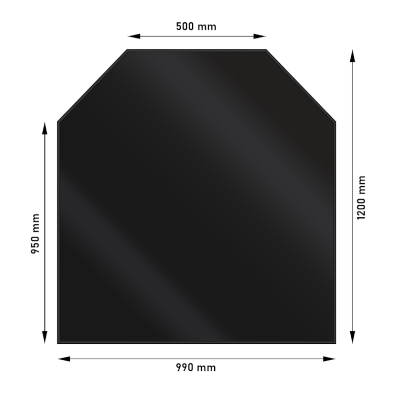Die Metallbodenplatte in moderner Sechseck-Form bietet zuverlässigen Schutz für Ihren Boden im Bereich Ihres Kaminofens. Mit einer Größe von 1000 x 1200 mm ist sie ideal für mittlere bis größere Stellflächen geeignet und fügt sich dank ihrer klaren Linienführung besonders gut in moderne Wohnräume ein. Durch ihre kantige Form passt sie perfekt zu eckigen Kaminöfen oder Öfen mit geradlinigem Design.