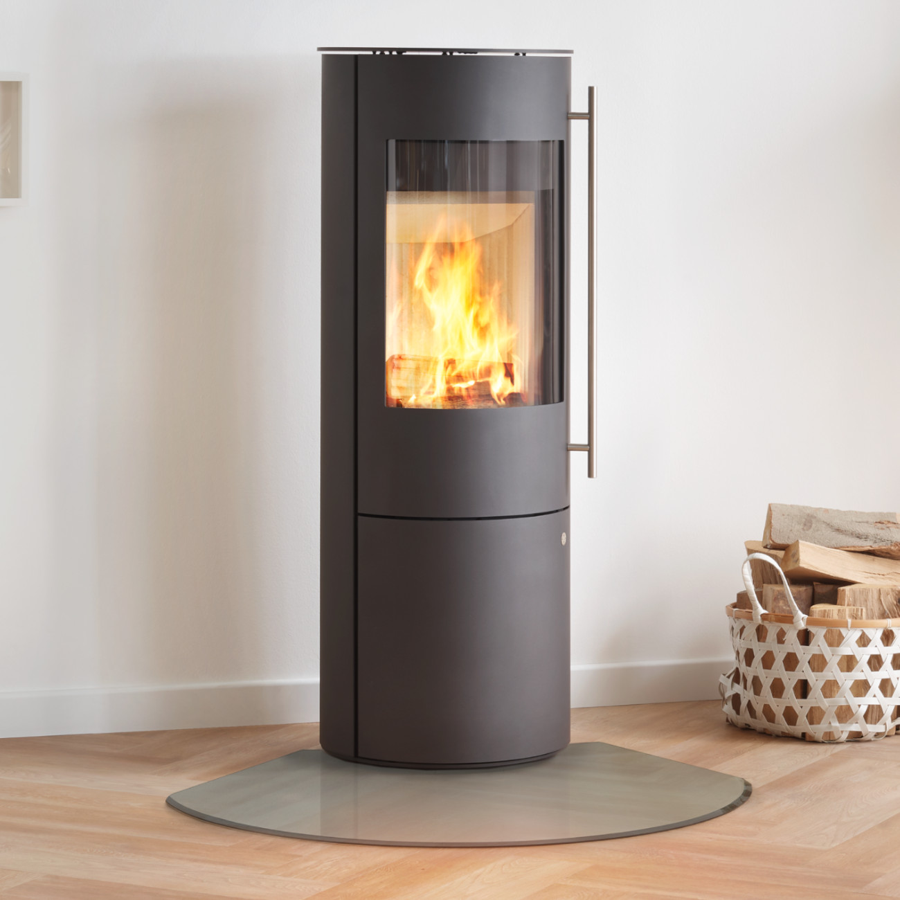 Der elegante Stangengriff ist wahlweise in Silber oder Schwarz erhältlich und unterstreicht das moderne Design des Kaminofens. So lässt sich der Muna Plus optimal an den persönlichen Wohnstil anpassen.