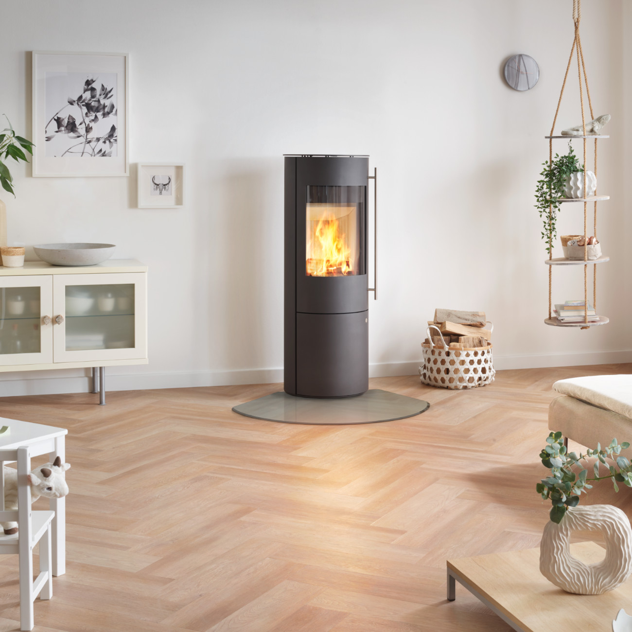 Ein Traum für jedes Wohnambiente: Die MUNA Familie zieht mit ihrem hohen Brennraum und der elegant gewölbten Panoramascheibe die Aufmerksamkeit auf das flackernde Flammenbild. Der Feuerschein des Muna Plus taucht die Umgebung in eine stimmungsvolle, romantische Atmosphäre und lädt zum Entspannen und Verweilen ein.
