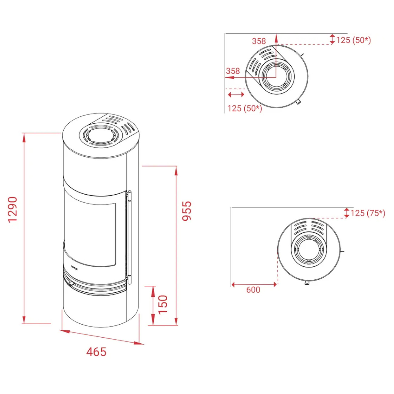 Ganz nach Ihren Wünschen Die Lotus Liva-Kaminofenserie bietet unendlich viele Möglichkeiten – Ihrer Fantasie sind keine Grenzen gesetzt. Sie können wählen zwischen der hohen, mittelhohen und niedrigen Ausführung. Der Kaminofen ist auch als Wandmodell erhältlich. Der Kaminofen ist mit Glas-, Stahl- oder Speckstein, Indian Night und Sandstein in erstklassiger Qualität erhältlich, damit keine Wünsche offen bleiben. Die großen doppelverglasten Seitenfenster unterstreichen nicht nur die eleganten Linien des Ofens, sondern bewirken auch eine höhere Temperatur in der Brennkammer und somit eine bessere Verbrennung. Der warme Schein der Flammen lässt sich so aus allen Winkeln erleben und macht diesen Ofen zu einem lebendigen Element der Inneneinrichtung. Die Serie Liva, das sind Kaminöfen der absoluten Topklasse. Hochwertige Materialien und Design-Details sind Merkmale dieser Serie.Für welche Ausführung Sie sich entscheiden, hängt davon ab, ob Sie lieber dem Spiel der Flammen zuschauen oder mehr Wert legen auf ein klassisch-minimalistisches Design oder die Möglichkeit der Wärmespeicherung. Der Kaminofen ist mit vielen komfortablen Details ausgestattet, wie z. B. das praktische Schubladenelement mit Magnetverschluss für Zubehör und Anzündehilfen, eine besonders robuste Tür aus Stahl und Gusseisen sowie ein exklusiver Silikon-Bedienhebel unter der Tür, mit dem Sie die Verbrennung einfach und kontrolliert regulieren können. Der praktische Aschenkasten ist hinter der Tür versteckt.Bei allen Ausführungen lässt sich der Look durch die Wahl eines Griffs ganz nach Geschmack anpassen. Die Ausführungen Classic, Modern oder Shape stehen zur Auswahl. Alle drei Griffe sind so gestaltet, dass sie eine optimale Bedienung im Alltag ermöglichen. Besonderheiten auf einem Blick Kann für Raumluftunabhängigen Betrieb (RLU) nach DIBT zugelassen werden (DIBT-Prüfung gegen Aufpreis erhältlich) - besonders geeignet für Gebäude mit Lüftungsanlagen Anschluss für die externe Luftzufuhr (80 mm) Rüttelrost Cool-Hand-Griff - liegt ergonomisch gut in der Hand und lässt sich auch ohne Handschuhe bedienen Lotus – „Turbo-Clean“- Scheibenreinigung Anschlussmöglichkeit oben und hinten (wählbar) Passgenaue Glas Vorlegeplatte als optionales Zubehör (gegen Aufpreis erhältlich) Höhenverstellbare Füße Quality first Prinzip - Verbrennung (Hochtemperaturofen, Saubere Verbrennung, Brennholz wird optimal genutzt, CO2 neutral) | Haltbarkeit (Dicker Walzstahl, Kräftige Türen, 5 mm Glas in den Türen) | Design (Zweckmäßig, Benutzerfreundlich, Formvollendet, Dänisch) Merkmale: Energieeffizienzklasse: A Nennwärmeleistung: 5 kW Wärmeleistungsbereich: 3 bis 7 kW Raumheizvermögen (abhängig von der Hausisolierung): 30 bis 120 m² Korpus Farbe: Schwarz Verwendete Materialien: Stahl Form des Kamins: Oval Scheibenform: Runde Scheibe Türmechanismus: Magnetischer Verschluss Maße des Kamins: Höhe: 121,2 cm Breite: 50,8 cm Tiefe: 40,5 cm Gewicht: 150 kg Scheibenmaß: Höhe: 43 cm Breite: 31,5 cm Türmaße: Höhe: 73 cm Breite: 43 cm Brennraummaße: Höhe: 44 cm Breite: 37 cm Tiefe: 25,5 cm Rauchrohr-Anschlussdetails: Durchmesser: 150 mm Position Rauchrohranschluss: Oben; Hinten Abstand vom Boden zur Mitte des hinteren Ausgangs: 105,9 cm Abstand von Mitte des Rauchstutzens bis zur Hinterkante des Ofens: 15,8 cm Verbrennungsluft Typ: Externe Luftzufuhr / Raumluftunabhängiger Betrieb: Ja, optional anschließbar, mit der Externen Luftzufuhr können Sie den Ofen mit Luft aus einem Nebenraum oder von außen beheizen. Dies wirkt sich positiv auf das Raumklima aus. Ermöglicht auch den Anschluss einer elektronischen Verbrennungsluft Regelung Durchmesser Anschluss externe Luftzufuhr: 80 mm Position Anschluss externe Luftzufuhr: Hinten; Unten / Boden / Unterhalb Höhe Anschluss externe Luftzufuhr: 14,6 cm DIBt Zulassung: Ja; optional Brennstoffangaben: Zulässige Brennstoffe: Scheitholz; Holzbriketts Max. Scheitholzlänge: 35 cm Stündlicher Verbrauch: 1,7 kg/h Ausstattung: Scheibenspülung: Ja, klare Sicht auf das Feuer - Luftstrom vor der Glasscheibe, dadurch wird die Verschmutzung der Scheibe minimiert Wärmespeicherfähigkeit: Nein Doppelt verriegelte Tür: Ja, die Tür wird an zwei Punkten verriegelt und liegt somit besonders dicht an den Ofenkorpus an Ein-Regler-Steuerung: Ja, die gesamte Luftzufuhr des Ofens wird über einen Regler einfach gesteuert Für Dauerbetrieb geeignet (24 Std. Betrieb): Ja Holzfach: Ja, mit Tür Ascherost und Aschekasten: Ja Brennraum Auskleidung: Vermiculite Automatische Verbrennungsluftregelung: Nein Luftströme: Primärluft; Sekundärluft Rahmenlose Designscheibe: Nein Rüttelrost: Ja, die Asche einfach in den Aschekasten rütteln Konvektionsofen: Ja, gewährleistet eine bessere Verteilung der Wärme Sicherheitsabstände zu brennbaren Materialien: Hinten: 15 cm Seitlich: 30 cm Vorne: 80 cm Daten für den Schornsteinfeger: Bauart A1 - selbstschließende Feuerraumtür (mehrfache Belegung des Schornsteins): Ja Bundes-Immissionsschutzverordnung (BImSchV): 1. Stufe erfüllt; 2. Stufe erfüllt; Art. 15a B-VG (Österreich): Ja; VKF-Schweiz: Ja Wirkungsgrad (Energieeffizienz): 78,4 % Staub: 27 mg/Nm³ bez. auf 13% O² Kohlenmonoxid (CO): 625 mg/Nm³ bez. auf 13% O² Abgastemperatur: 330°C Abgasmassenstrom: 4,6 g/s Mindestförderdruck: 12 Pa CE Zeichen: Ja; Hinweis: Bitte sprechen Sie vor dem Kauf mit Ihrem zuständigen Schornsteinfegermeister. Lassen Sie Ihren Schornstein vor dem Einbau der Feuerstelle auf Verwendbarkeit prüfen. Beachten Sie außerdem die Bedienungsanleitungen und die Sicherheitsabstände. Lieferdetails: Lieferkosten: Kostenlos Bordsteinkante - Deutschlandweit, außer Inseln Lieferinfo: Die Lieferung erfolgt per Spedition, Bordsteinkante Dekorationsartikel und Rauchrohre gehören nicht zum Leistungsumfang Lieferung zum Aufstellort mit einem 2-Mann-Handling Service: Möglich gegen Aufpreis- sprechen Sie uns hierzu gerne an Optionales Zubehör (siehe Bilder)