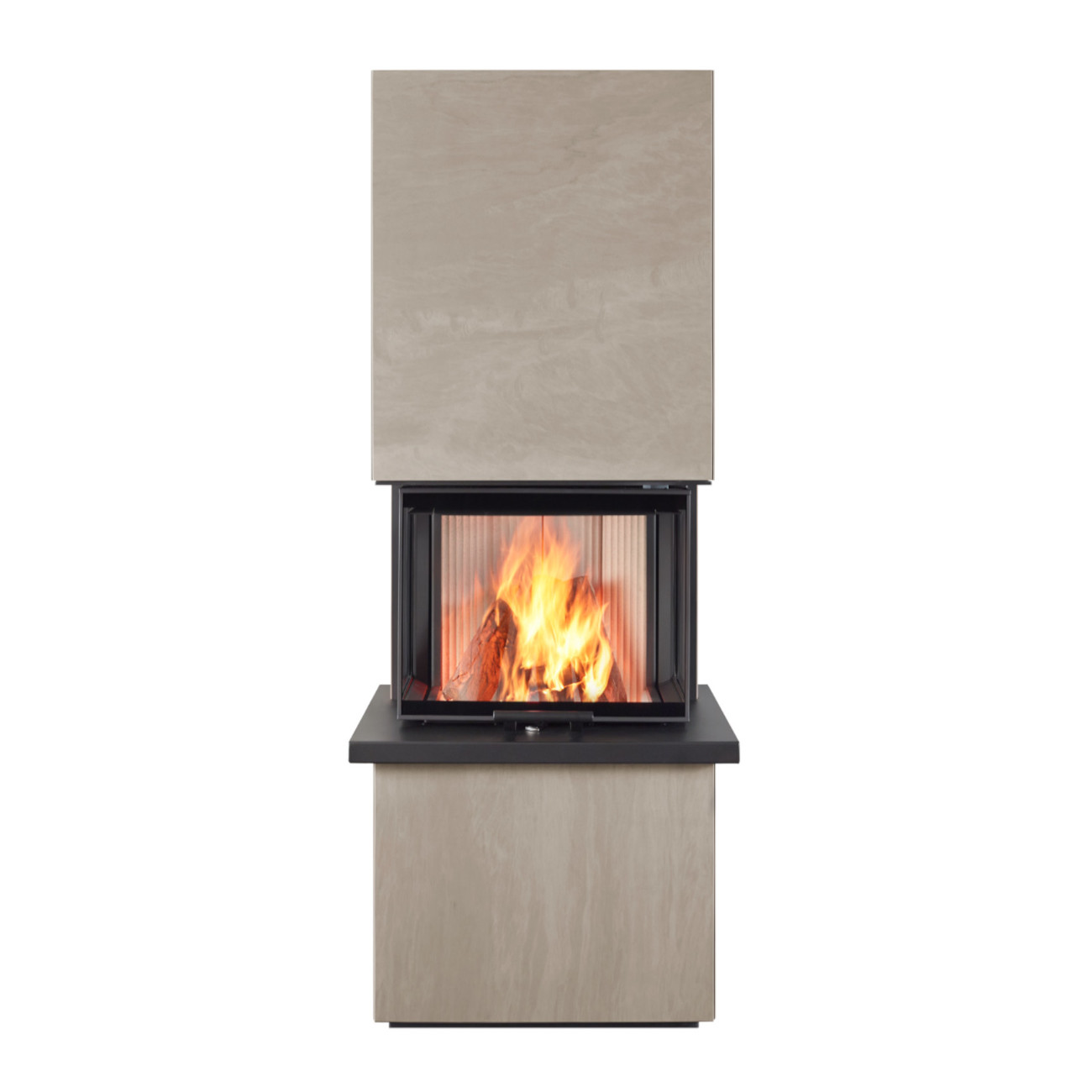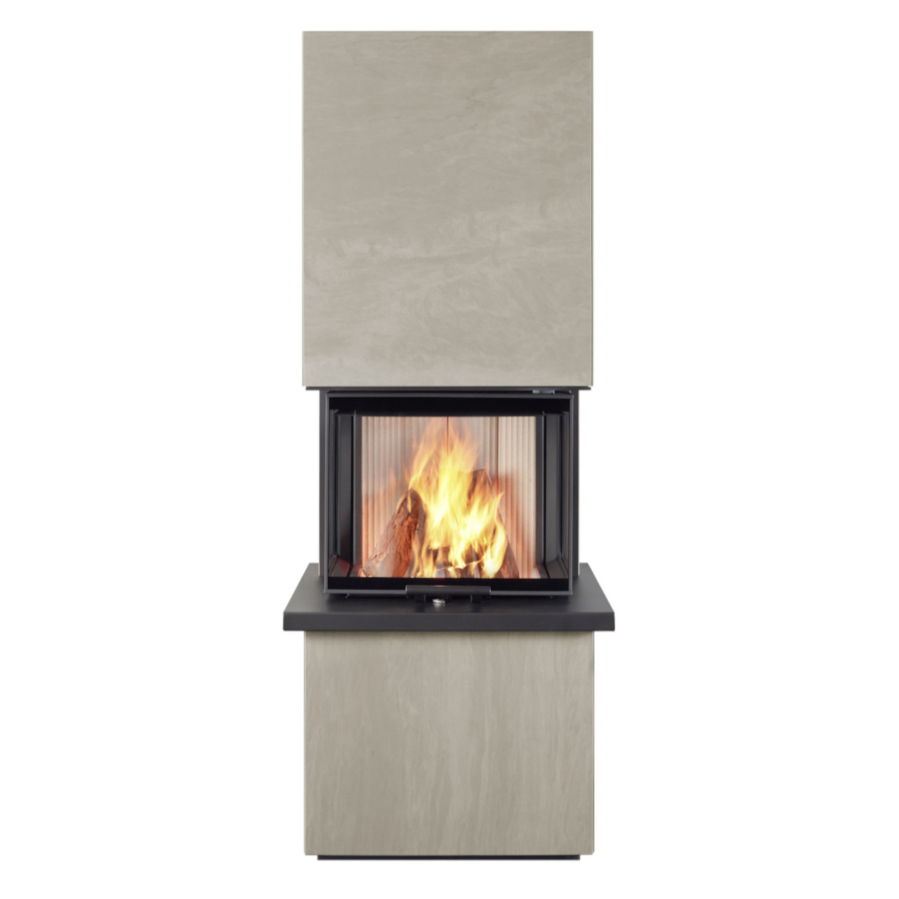 Mit seiner markanten, 3-seitigen Panoramascheibe und der hochschiebbaren Tür genießen Sie einen nahezu uneingeschränkten Blick auf das lebendige Flammenspiel – eindrucksvoll inszeniert in jedem Wohnraum. Für noch mehr Wohnkomfort lassen sich direkt am Kaminofen Sitzbänke oder Holzlagerfächer integrieren.