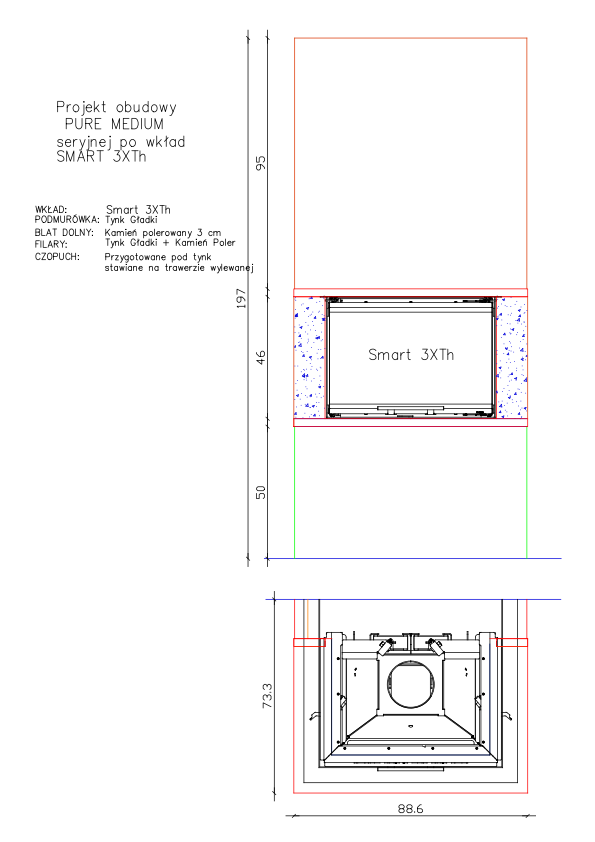 Maße des Kaminbausatzes: