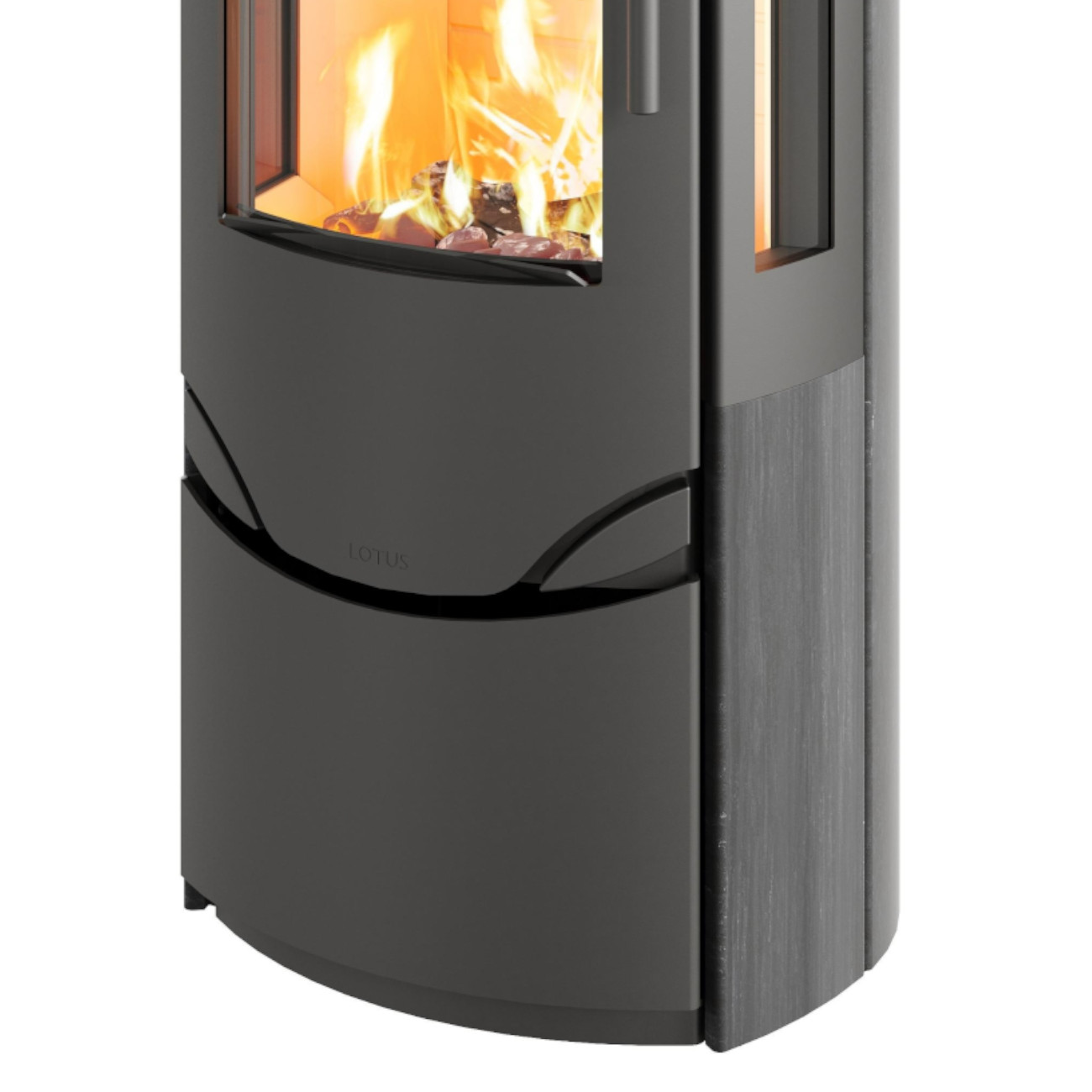 Dieser Lotus Kaminofen ist mit natürlichem Indian-Night-Stein verkleidet und handpoliert. Jeder einzelne Stein wird von Hand bearbeitet und sorgfältig verarbeitet. Farbunterschiede, natürliche Einschlüsse sowie eine ungleichmäßige Oberflächenstruktur sind kein Makel, sondern ein Qualitätsmerkmal echten Natursteins. Auch leichte Maßtoleranzen sind normal und unterstreichen den Unikat-Charakter.