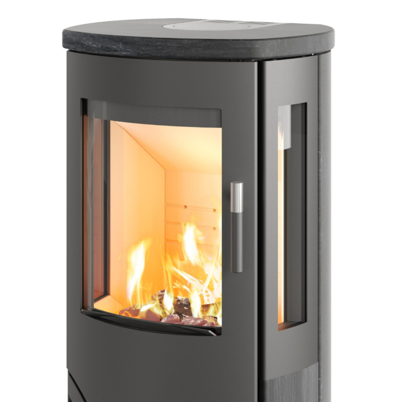 Die doppelverglasten Seitenfenster erhöhen die Temperatur in der Brennkammer und sorgen damit für eine effizientere, sauberere Verbrennung sowie eine verbesserte Wärmeausbeute. Der warme Schein der Flammen lässt sich aus nahezu jedem Winkel des Raumes genießen.