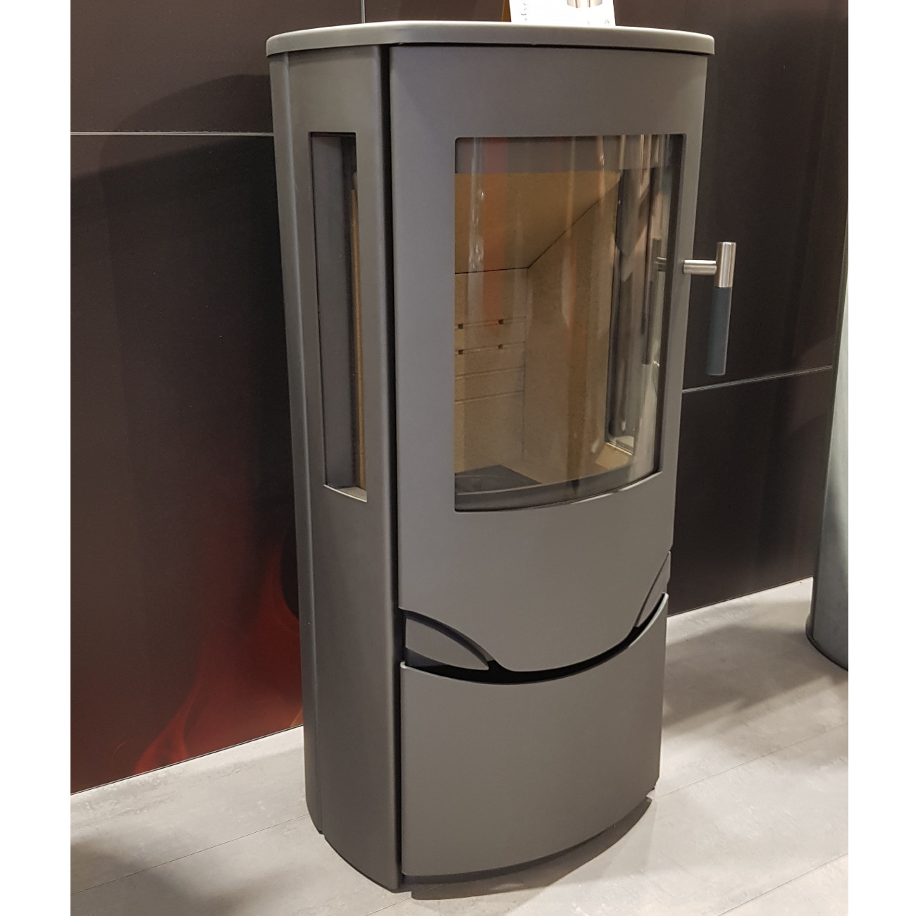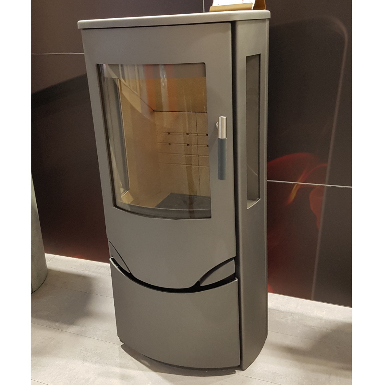 Lotus Prio 6 Panorama Kaminofen 7 kW Grau – beeindruckende Feuersicht aus drei Seiten