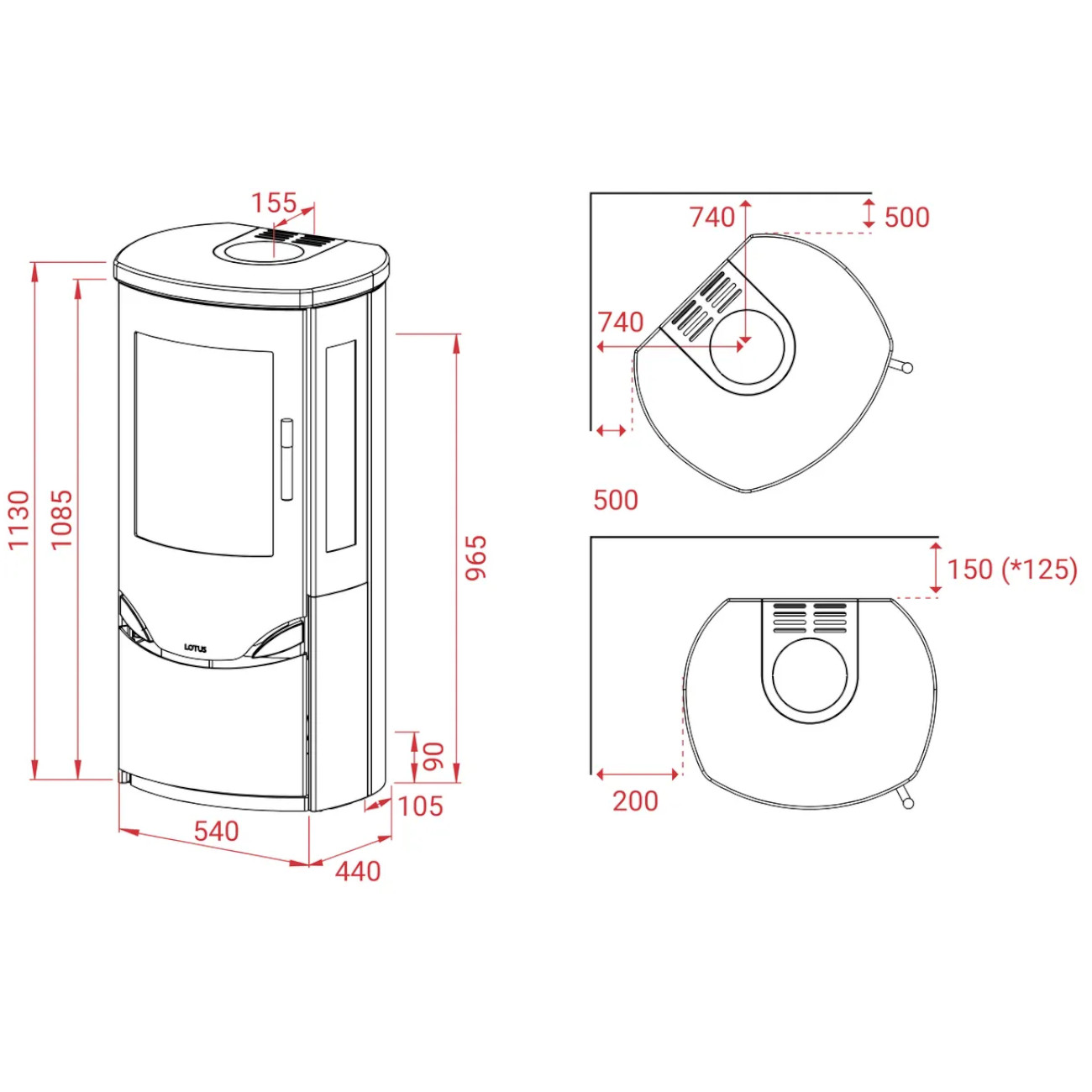 - Abstand von Mitte des Rauchstutzens bis zur Hinterkante des Ofens: 15,5 cm
