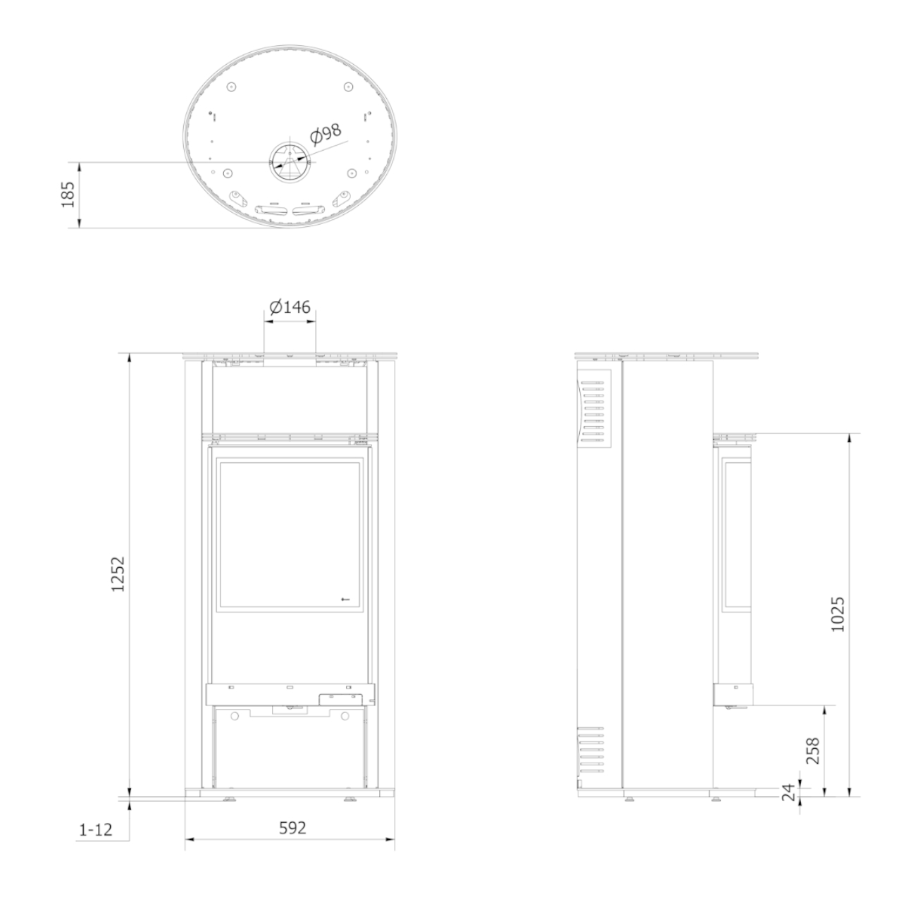 - Abstand von Mitte des Rauchstutzens bis zur Hinterkante des Ofens: 18,5 cm
