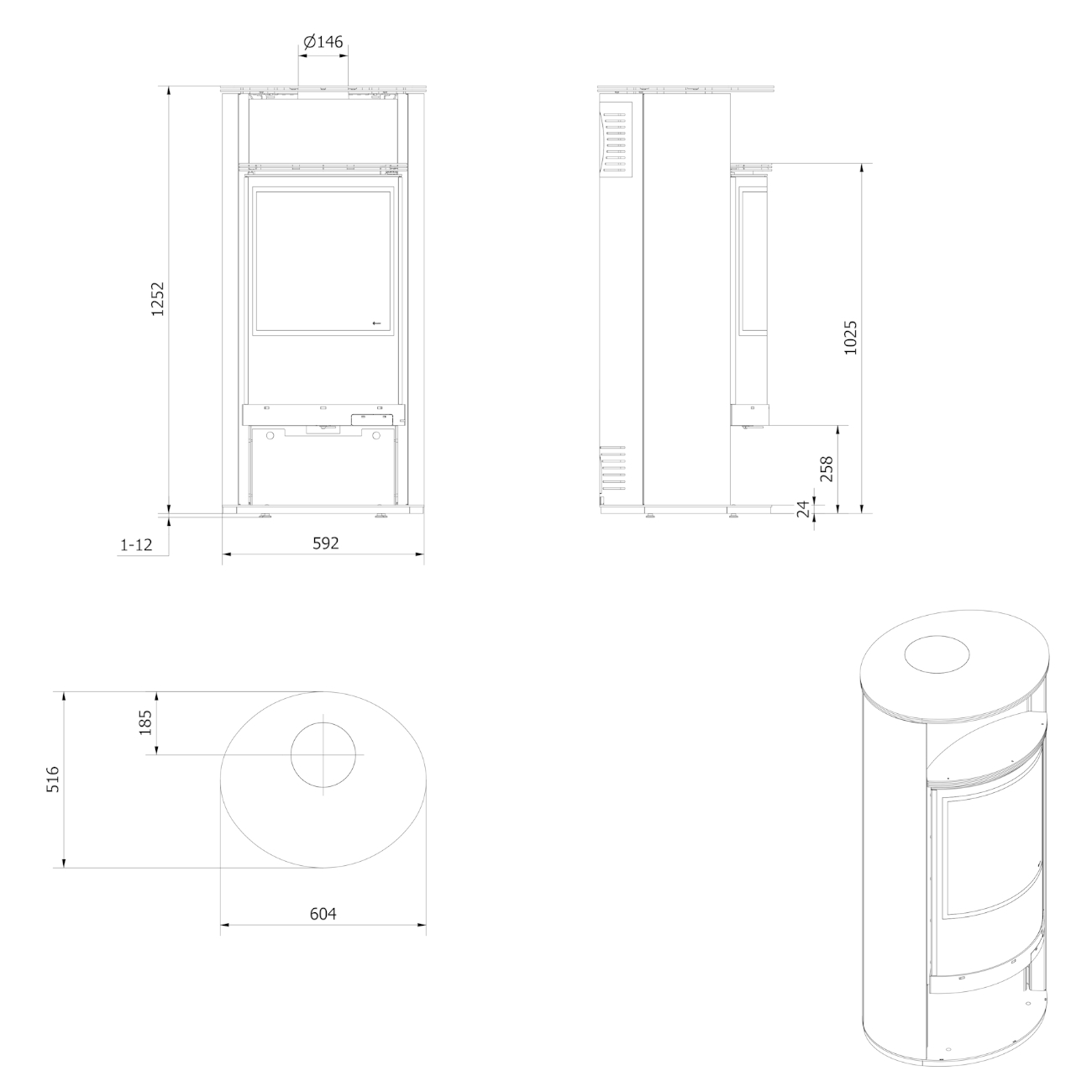 - Dreifaches Luftzufuhrsystem (Primär, Sekundär & Scheibenspülung) – sorgt für saubere Verbrennung und klare Sicht auf das Feuer