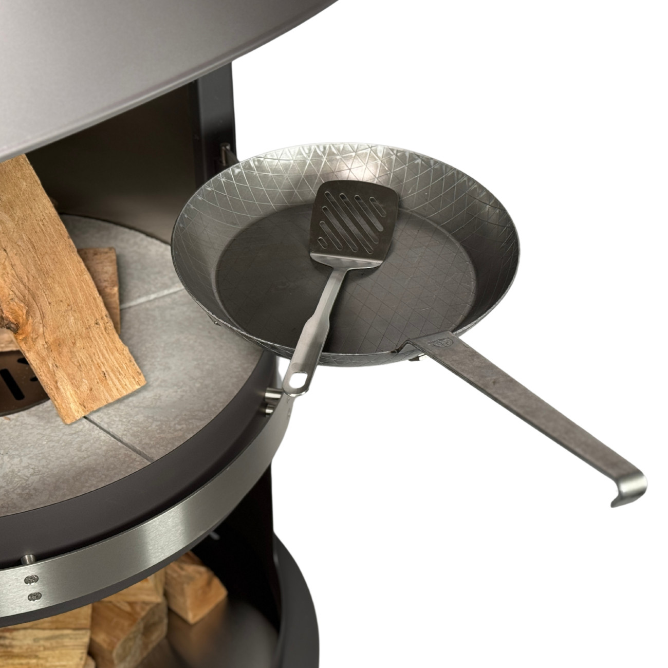 Schmiedeeiserne Pfanne für Firestar Gartenkamin – Ø 32 cm inkl. Pfannenwender & Halterung