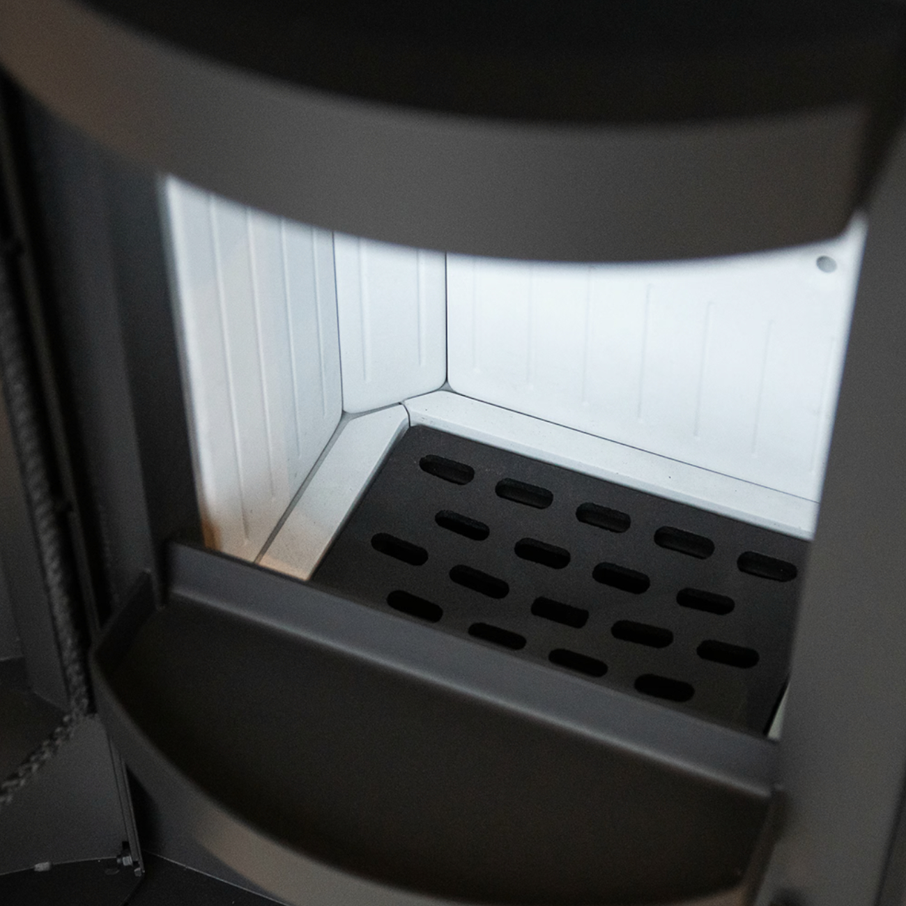 - Rezessierter Brennraum – verhindert Ascheaustritt beim Nachlegen