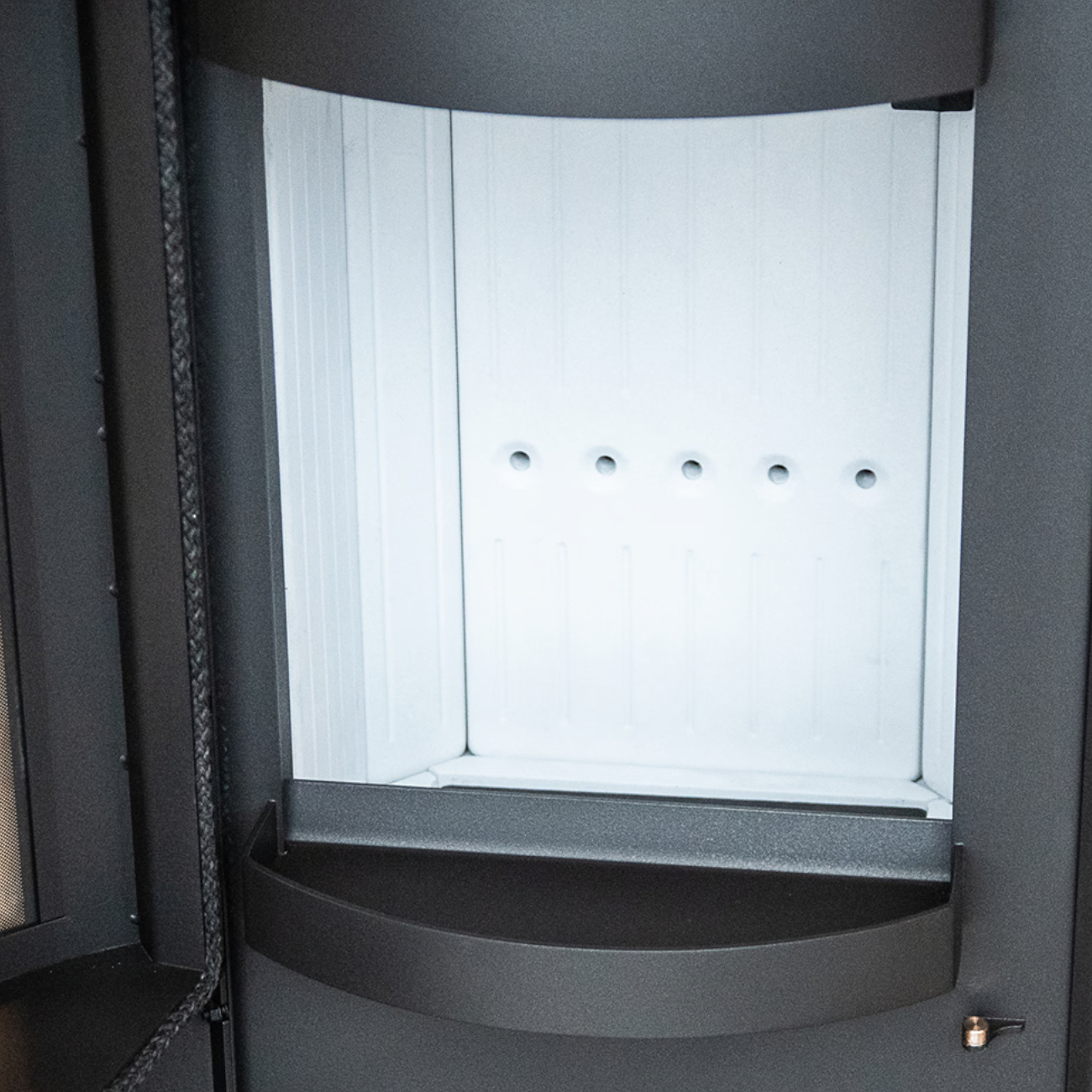 - Hochwertige Brennkammerauskleidung aus weißem TERMOTEC – hitzebeständig & speicherfähig