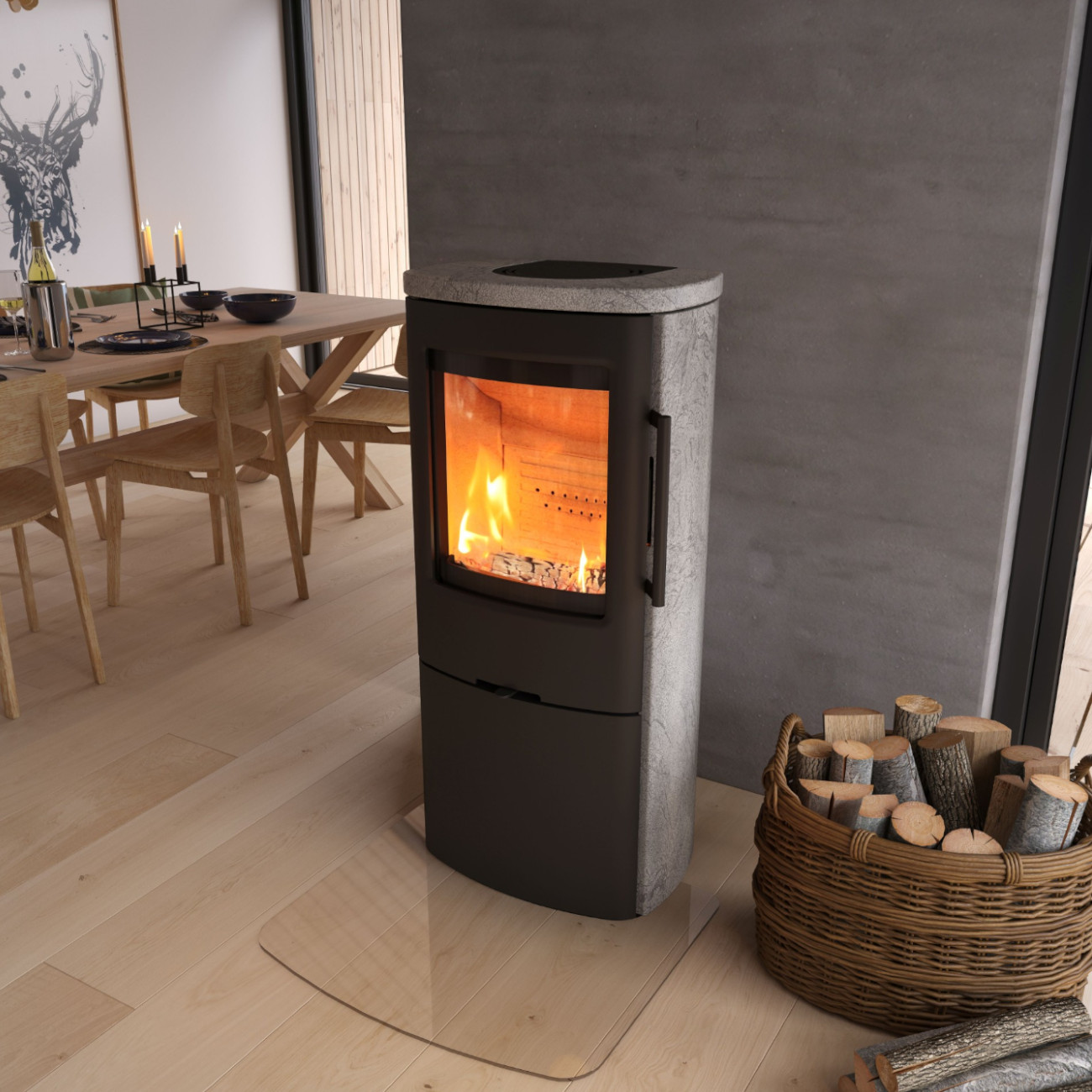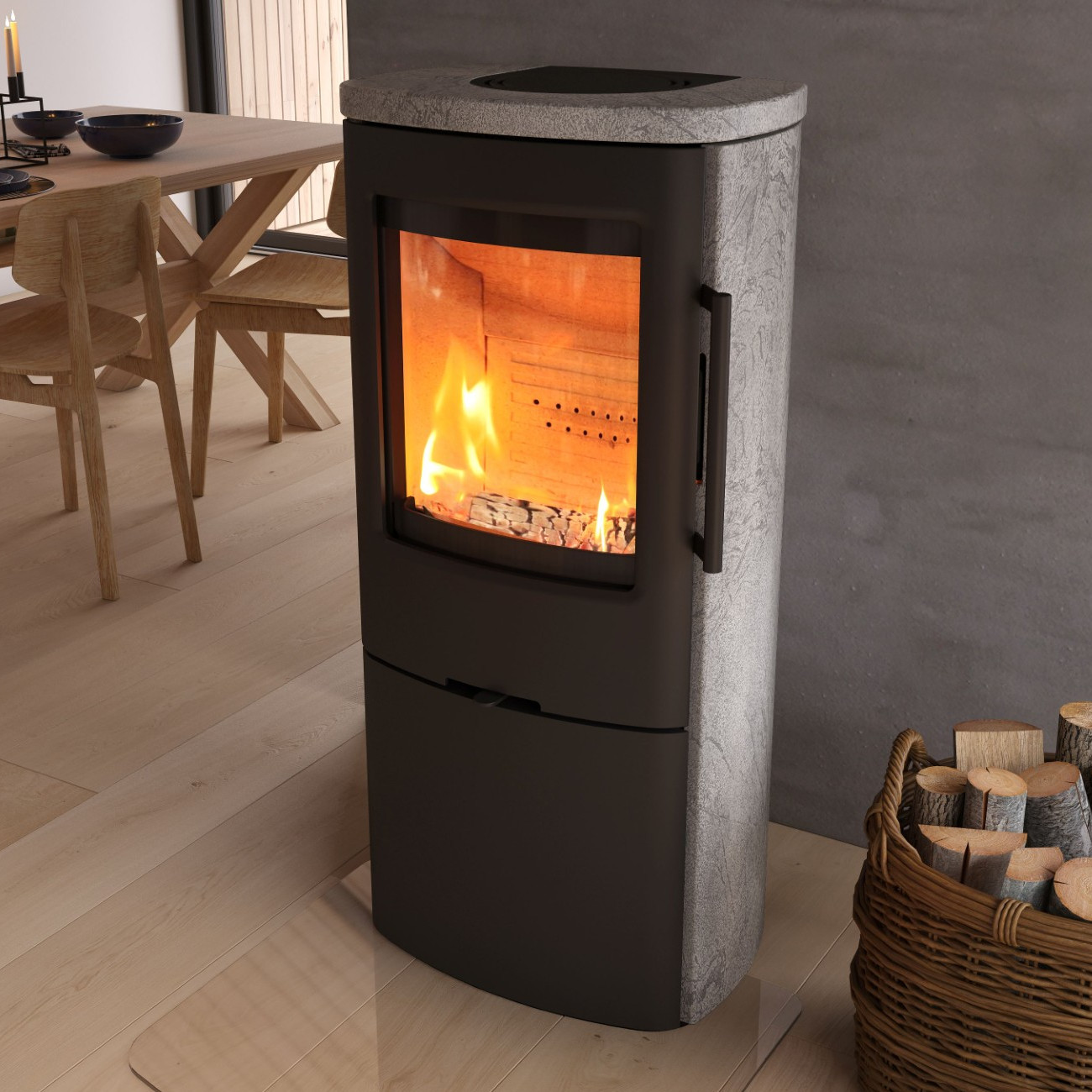Die Kombination aus moderner Heiztechnik, langlebigen Materialien und natürlicher Wärmespeicherung macht diesen Kaminofen zu einer idealen Wahl für alle, die Wert auf Effizienz, Komfort und skandinavisches Design legen.