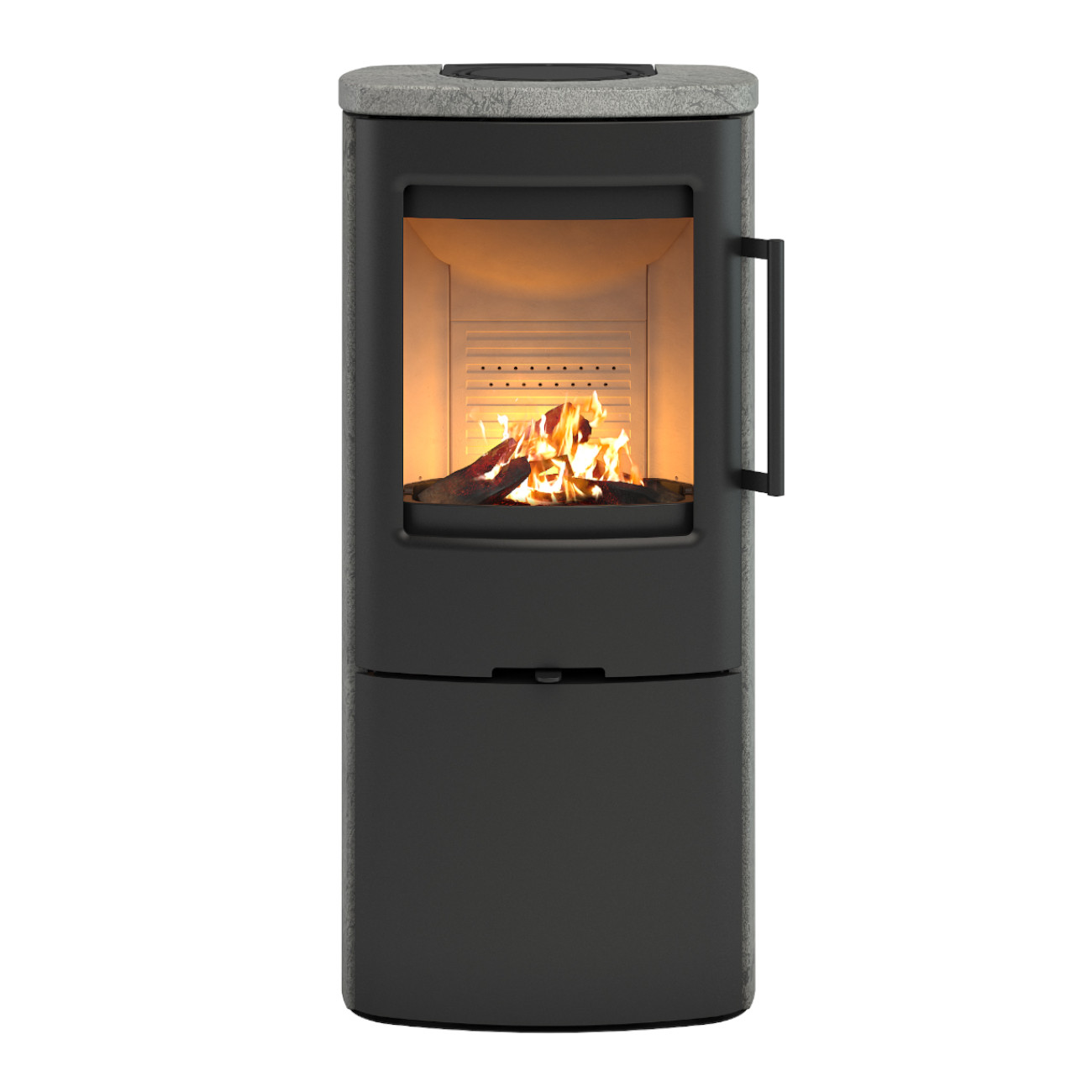 Der schwarze Griff sowie der Luftschieber mit schwarzer Silikonkappe fügen sich optisch perfekt in das elegante Design des Ofens ein. Die Luftzufuhr lässt sich präzise regulieren und sorgt für eine effiziente und saubere Verbrennung.