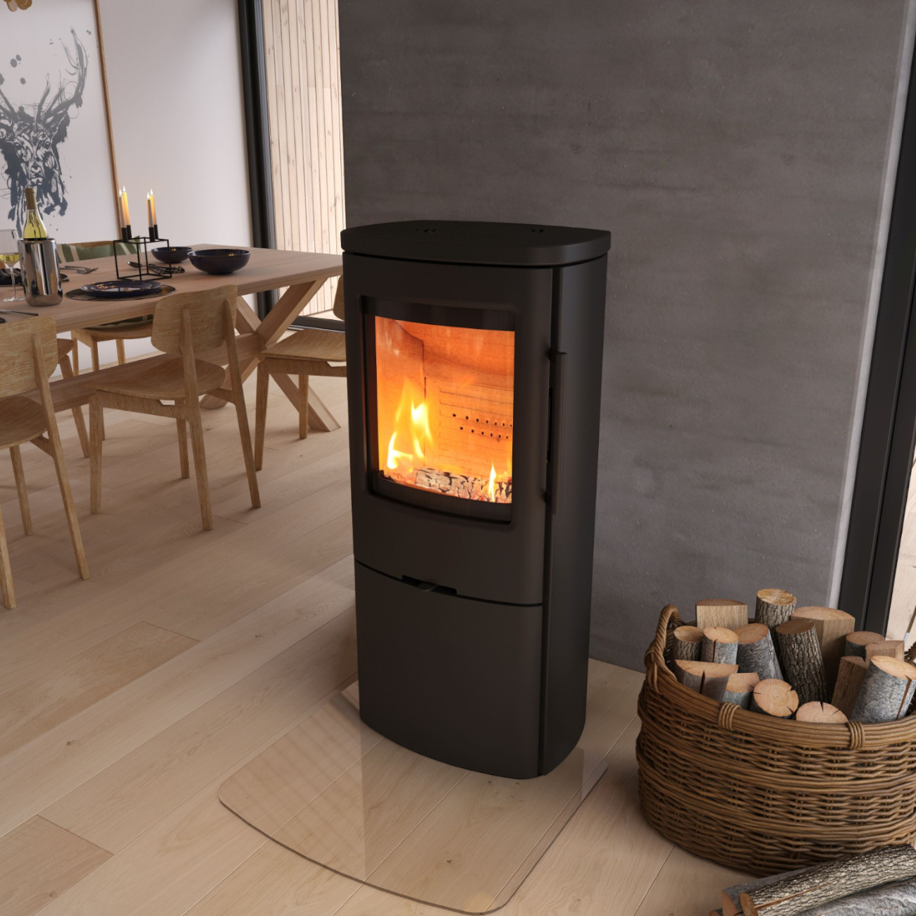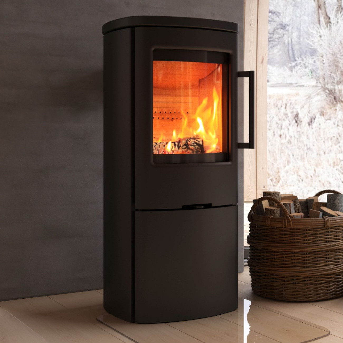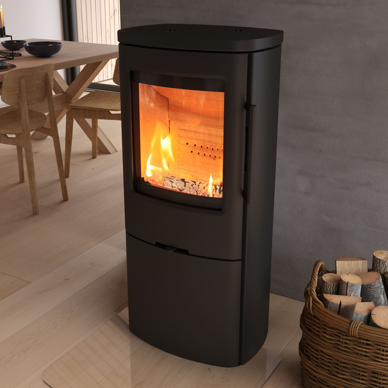Die TT44H Variante ist höher gebaut als das Standardmodell der TT44 Serie. Dadurch liegt der Feuerraum auf einer angenehmen Höhe, was das Nachlegen von Holz deutlich komfortabler macht. Gleichzeitig bietet das geschlossene Holzfach zusätzlichen Stauraum für Brennholz und sorgt für eine aufgeräumte Optik.