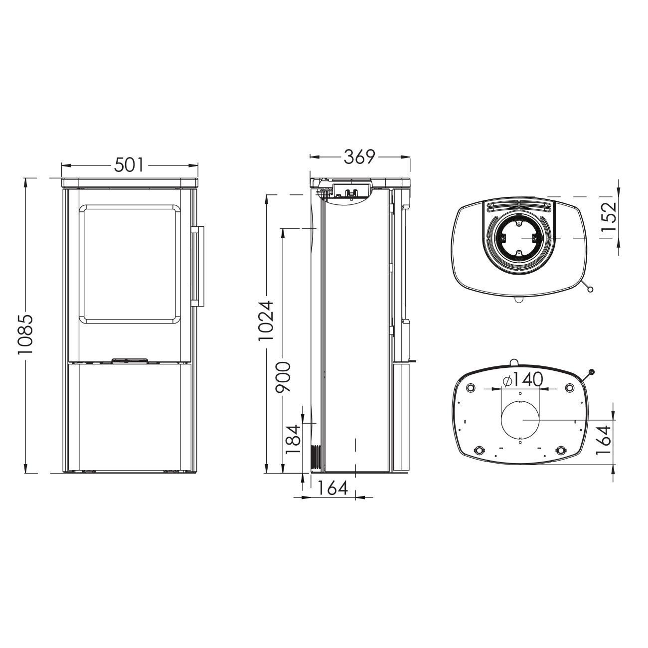 - Position Rauchrohranschluss: Oben oder Hinten