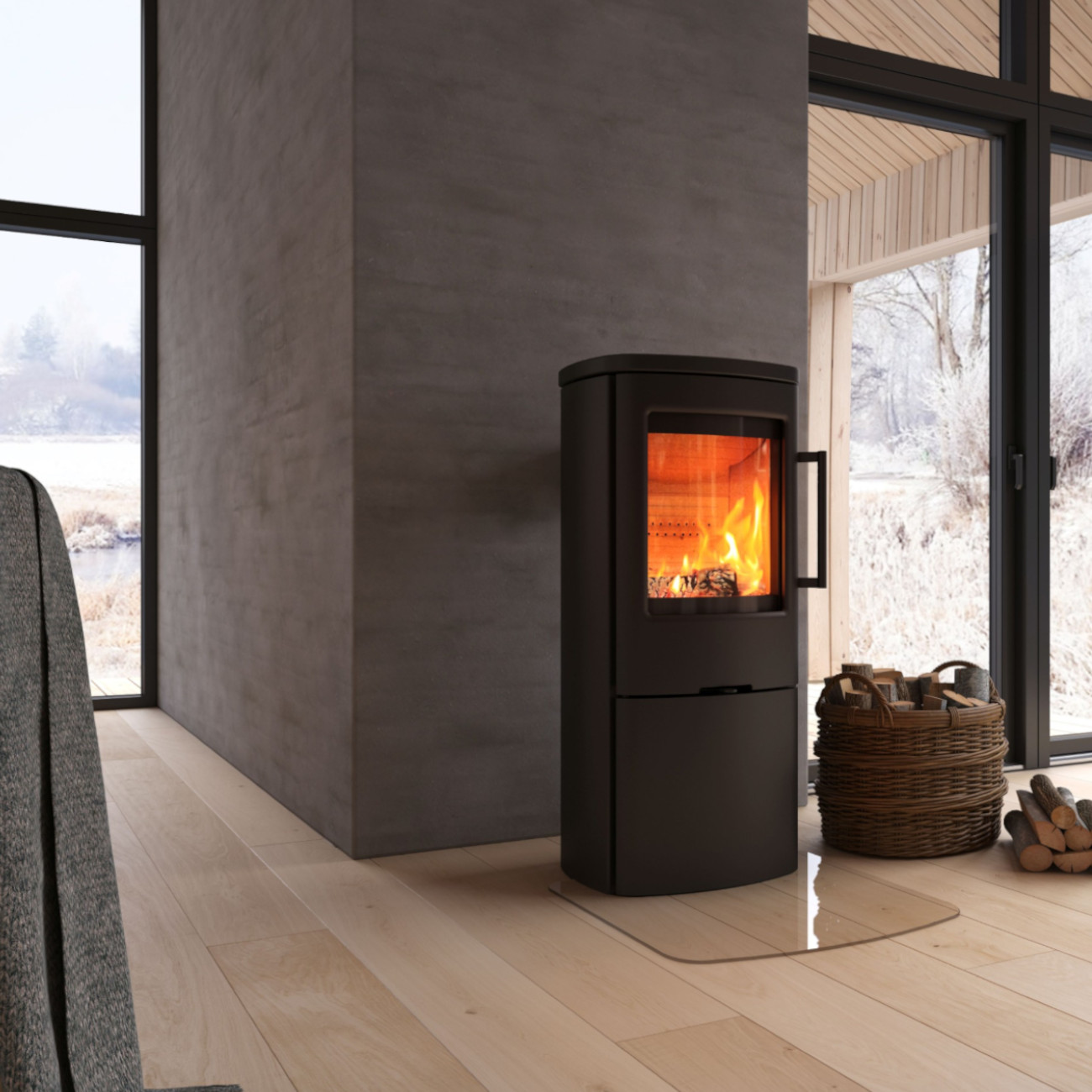 - Formgeschnittene Vorlege-Glasplatte – Eleganter Schutz für Ihren Boden! Die passgenaue Glasplatte verleiht Ihrem Kaminofen eine leichte und stilvolle Optik. Sie kann bei Bedarf – etwa zur Reinigung oder außerhalb der Heizsaison – mühelos entfernt werden. Dafür müssen die verstellbaren Füße des Ofens zuvor um mindestens 7 mm herausgedreht werden. Die Bodenplatte wird ein Stück unter den Kaminofen geschoben und um ihn herumgelegt, während der Ofen direkt auf dem Fußboden steht.