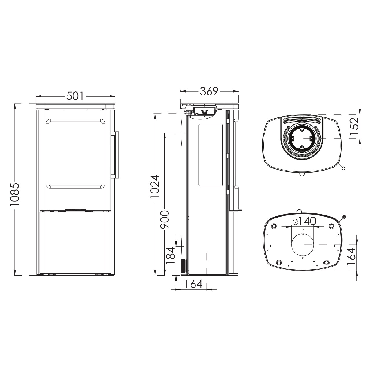 Dank der Möglichkeit zum Anschluss einer externen Frischluftzufuhr eignet sich der Kaminofen auch für moderne, gut gedämmte Häuser. Der Rauchrohranschluss kann nach oben oder nach hinten erfolgen und ermöglicht eine flexible Installation.