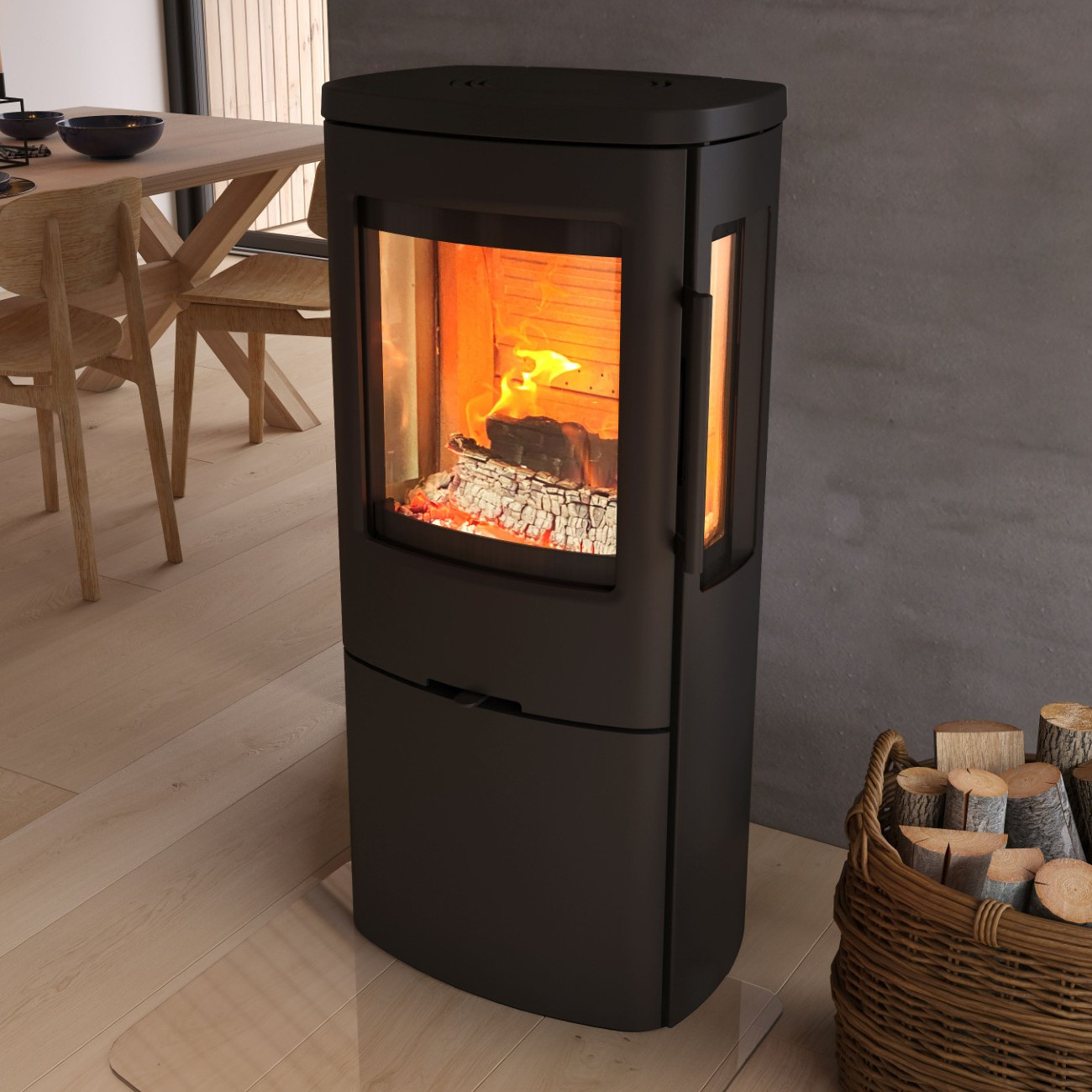 Mit seiner 5 kW Nennwärmeleistung eignet sich der TT44HG ideal für Wohnzimmer, moderne Wohnungen und kleinere Häuser. Das elegante Design mit abgerundeten schwarzen Stahlseiten, schwarzem Griff und serienmäßiger Holzfachtür verbindet skandinavische Formensprache mit hochwertiger Verarbeitung.