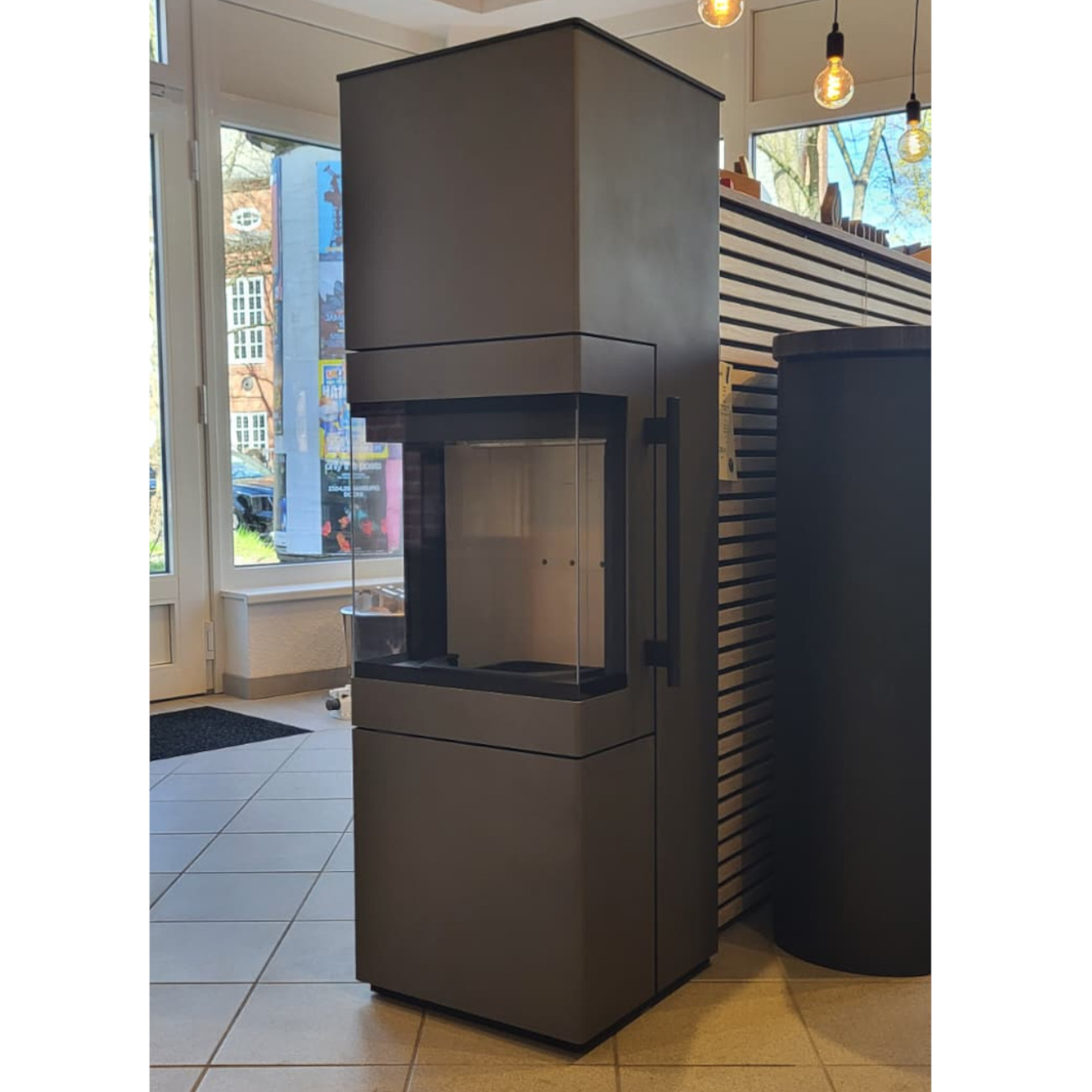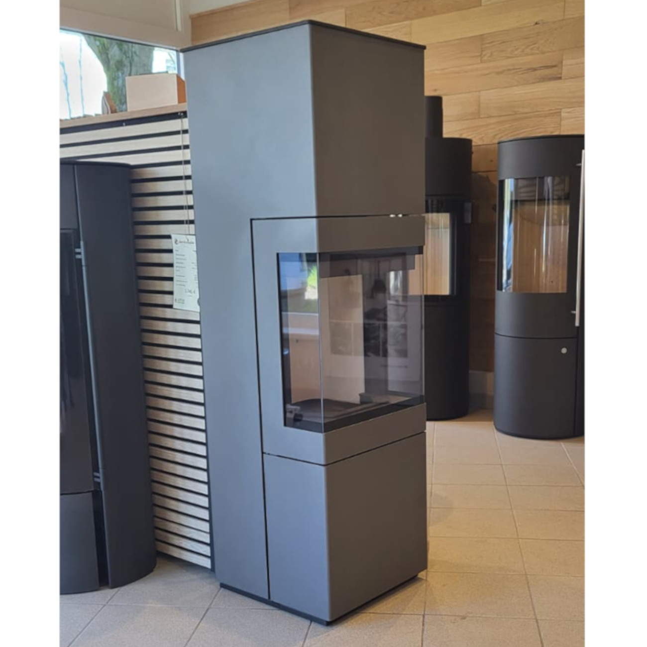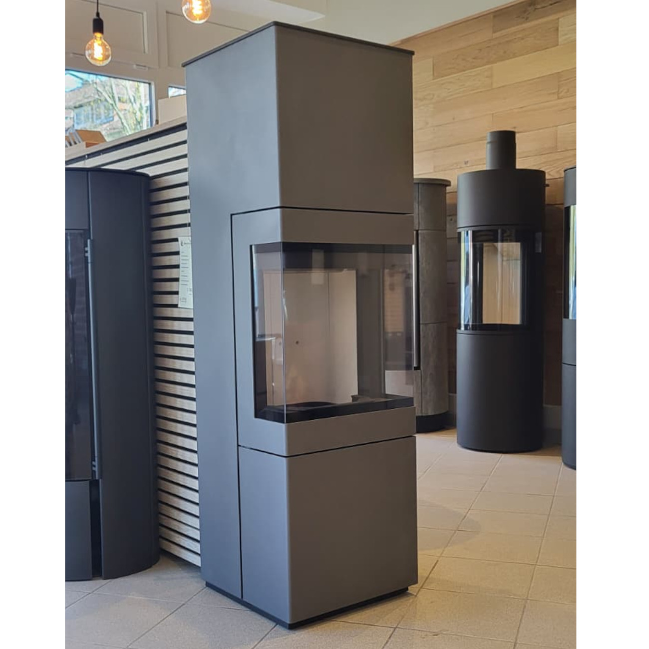 Die eindrucksvolle 3-seitige Verglasung ermöglicht einen faszinierenden Blick auf das Flammenspiel aus nahezu jedem Winkel des Raumes. Gleichzeitig sorgt die großflächige Glasfront dafür, dass die Wärme direkt und effizient in den Wohnraum abgestrahlt wird.