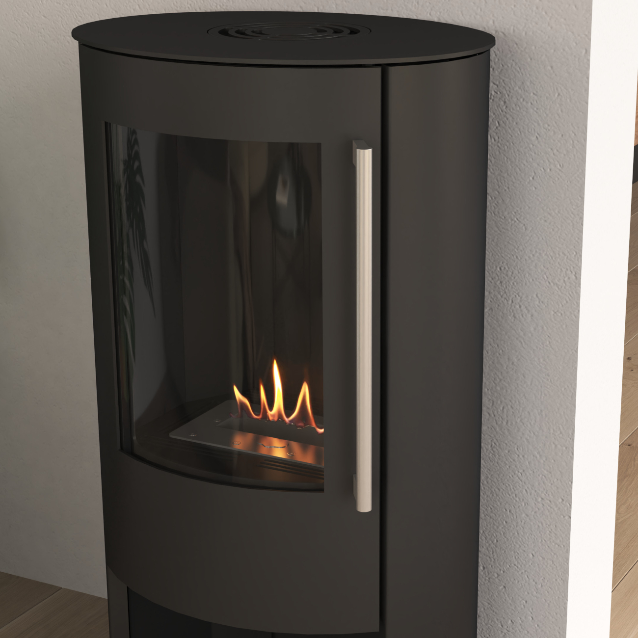 Kein Schornstein erforderlich: Da die Verbrennung sauber erfolgt, ist der Kaminofen nicht an einen Schornstein angeschlossen, wodurch er flexibel in verschiedenen Räumen platziert werden kann – sei es im Wohnzimmer, im Wintergarten oder sogar in einem modernen Büro.
