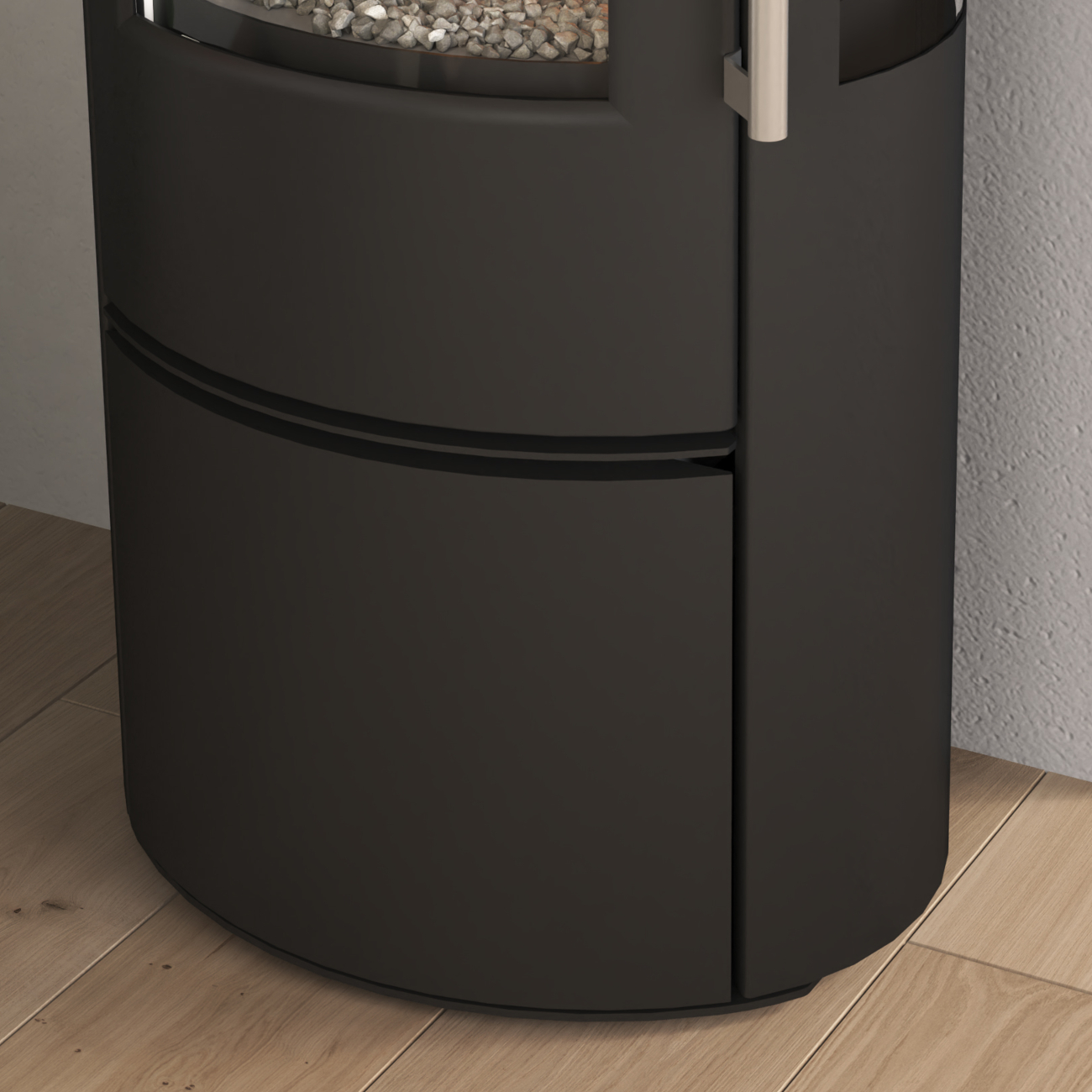 - Geschlossenes und sicheres Fach unterhalb der Brennkammer für ein 5 Liter Kanister Ethanol