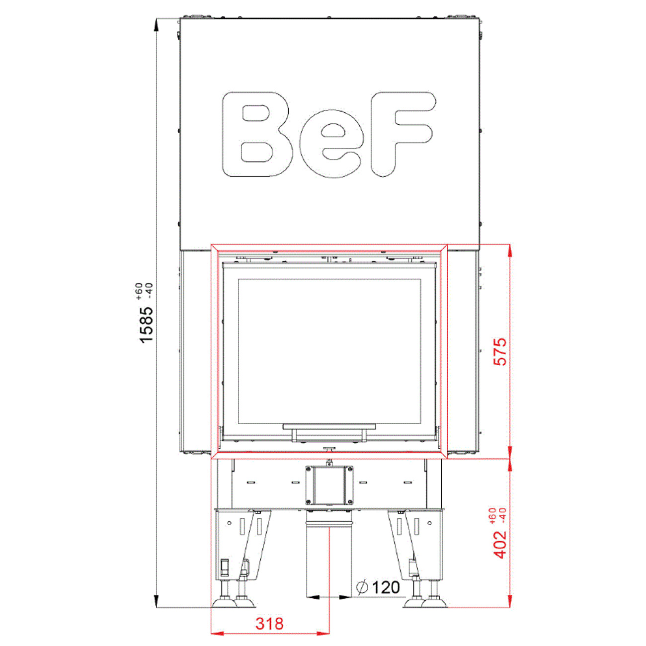 - Rauchrohr-Anschluss: Ø 150 mm (oben oder hinten)
