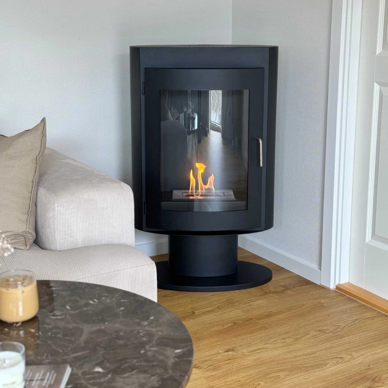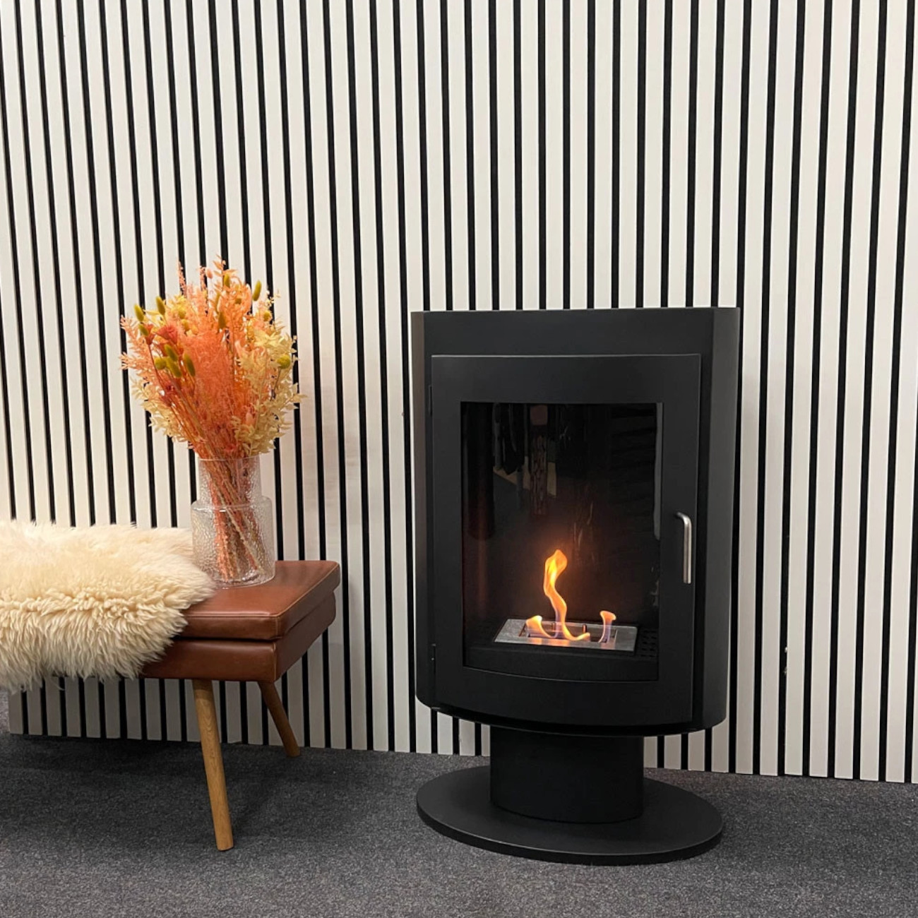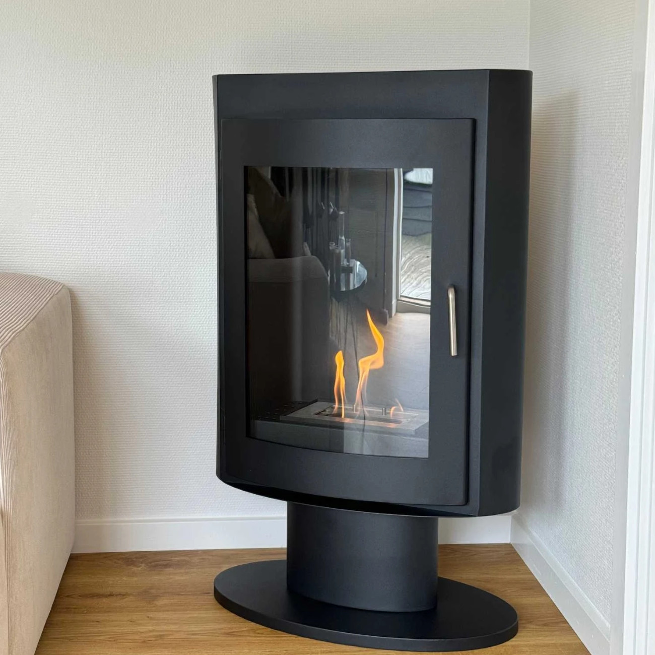 Der Trenton – Ethanolofen auf Fuß Schwarz ist die perfekte Lösung für alle, die den Charme eines klassischen Holzofens genießen möchten, jedoch eine moderne, saubere und wartungsarme Alternative suchen.