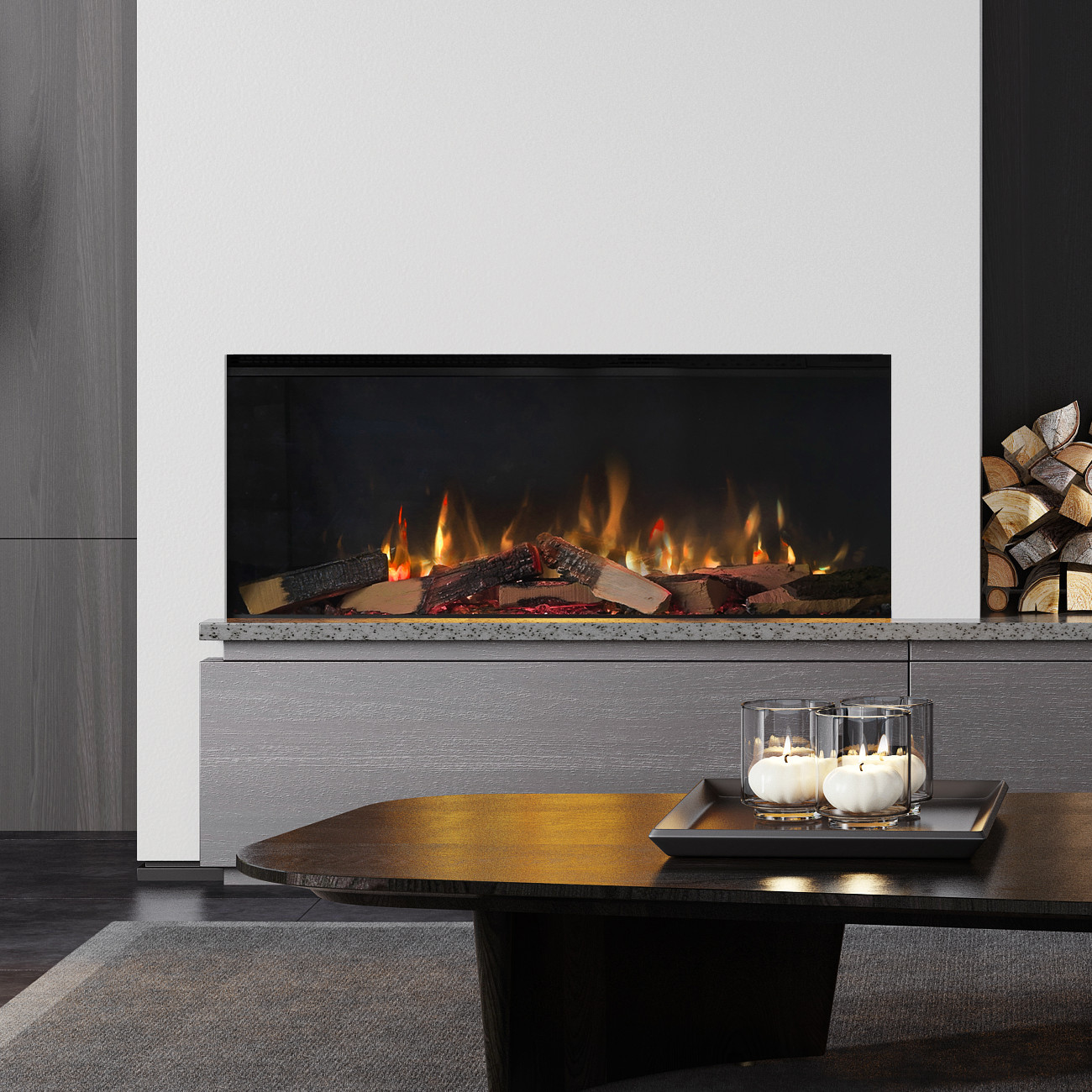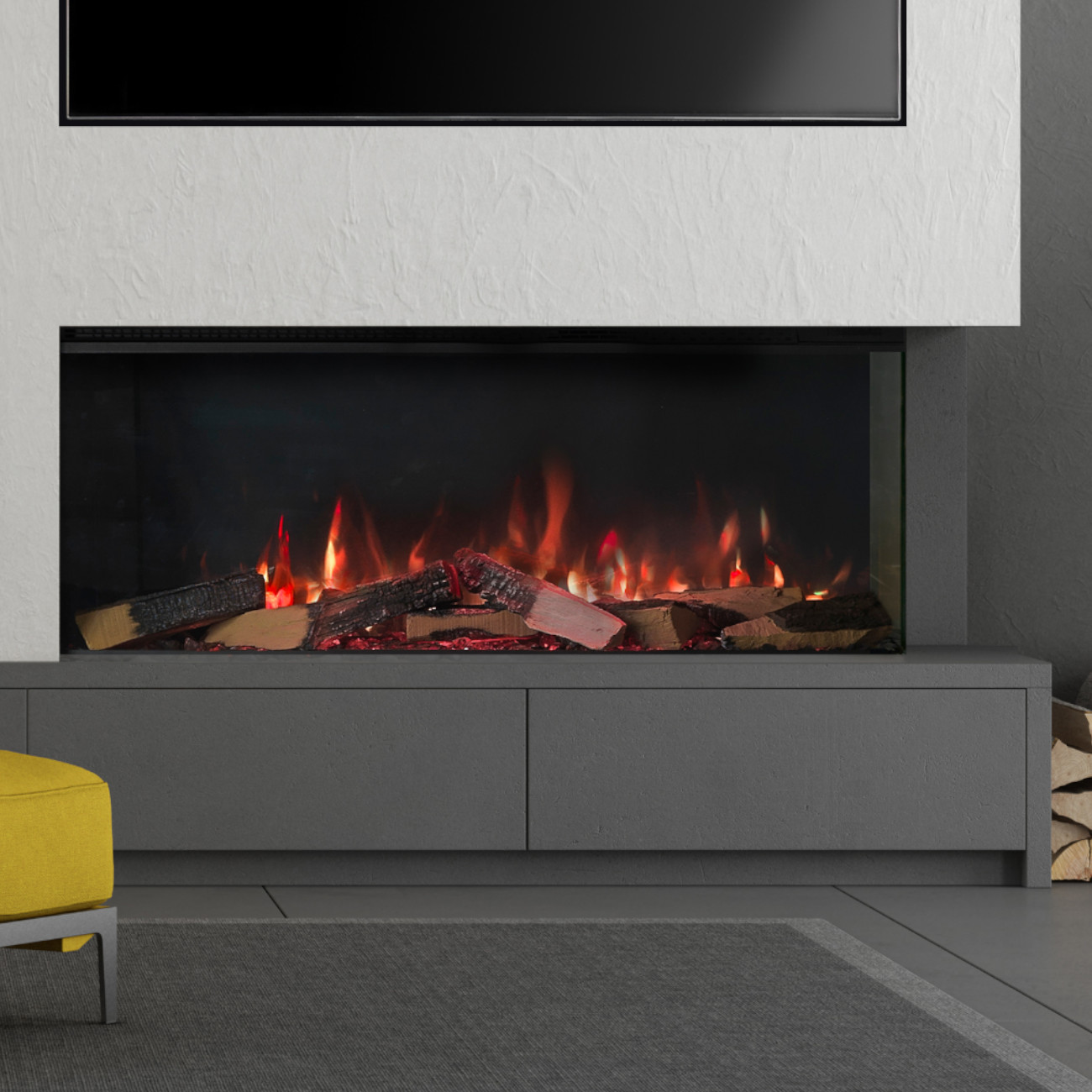 Mit der E-Serie hebt Trimline Fires die Flammentechnologie für Elektrokamine auf ein neues Niveau. Die 3D-Flammenoptik erzeugt durch ein besonders tiefes und realistisches Farbschema ein beeindruckendes Flammenbild.