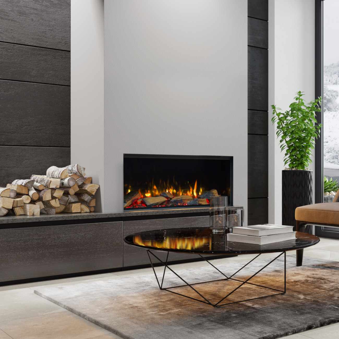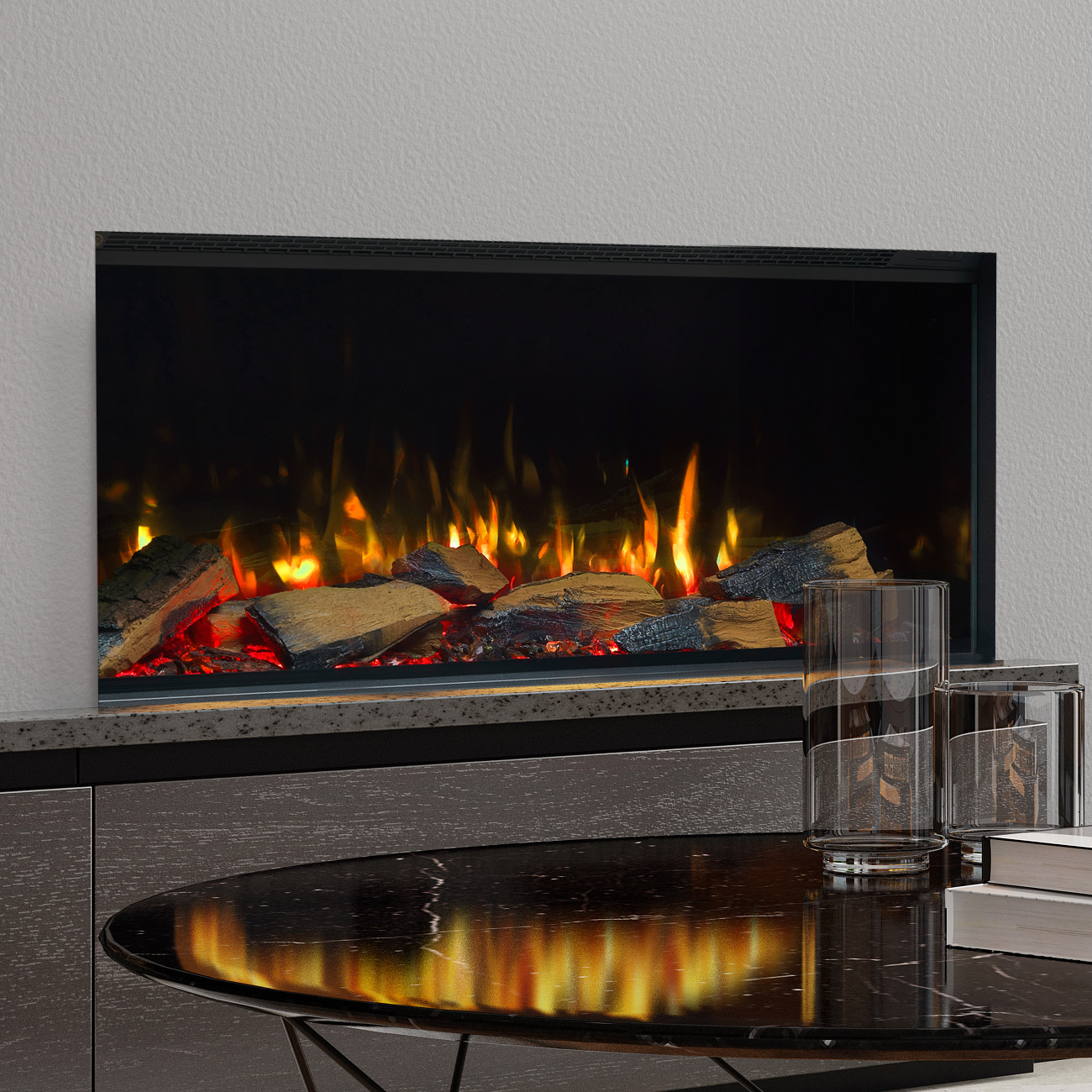 Atemberaubende 3D-Flammenoptik der Trimline E-Serie