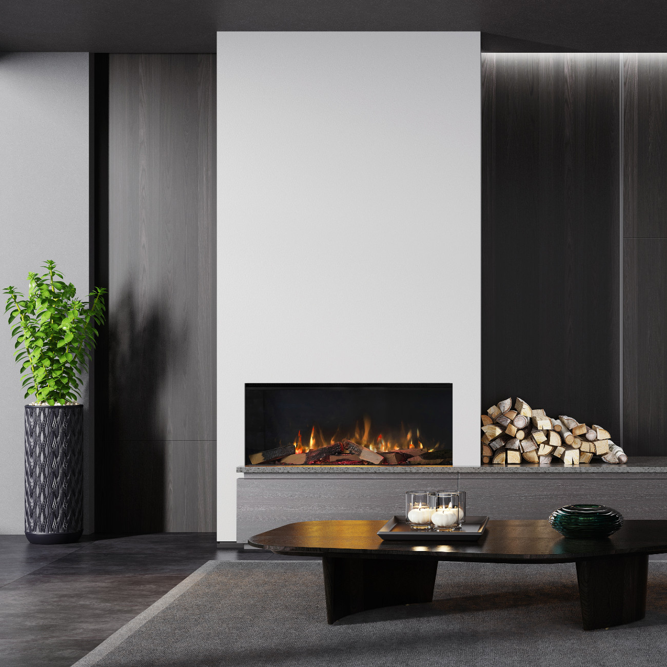 Da kein Schornstein, kein Rauchabzug und keine aufwendigen Brandschutzmaßnahmen erforderlich sind, kann der Elektrokamin besonders einfach installiert werden. Dadurch eignet sich der Trimline 100E perfekt für Designprojekte im Wohnzimmer, Wohnwände oder als stilvolles Highlight in modernen Wohnkonzepten.