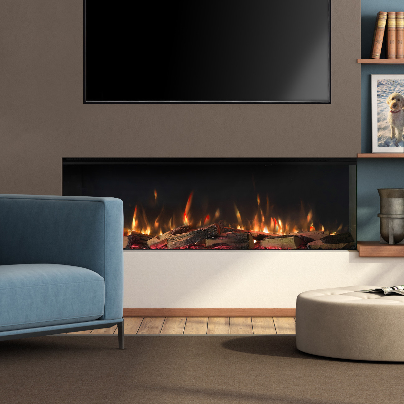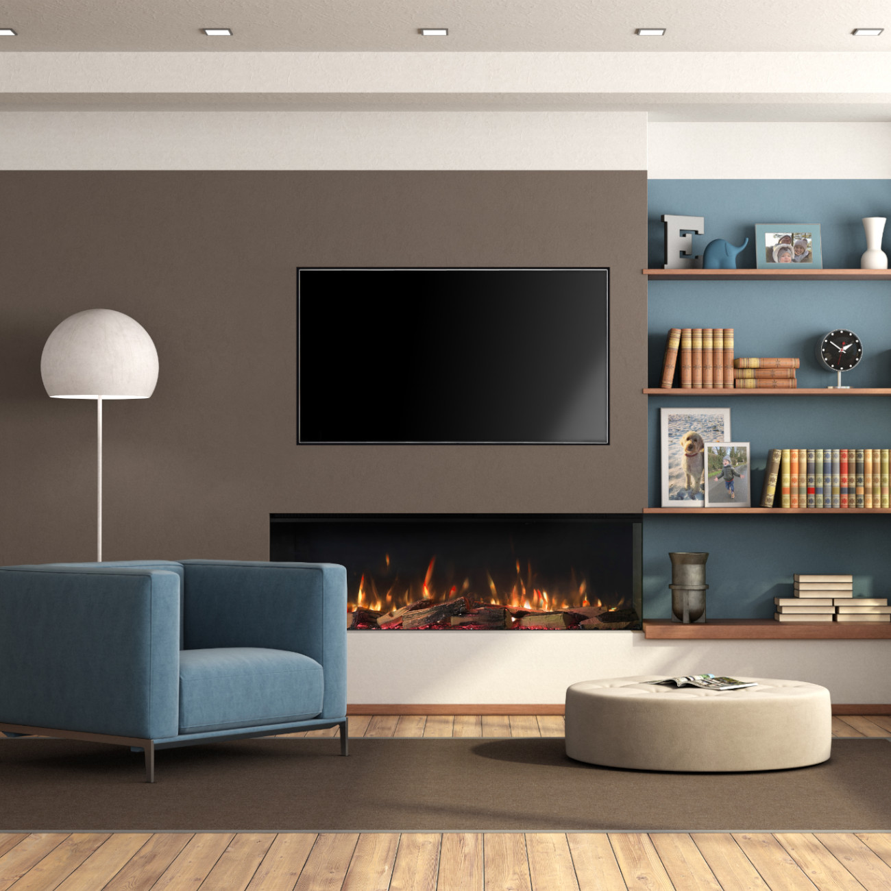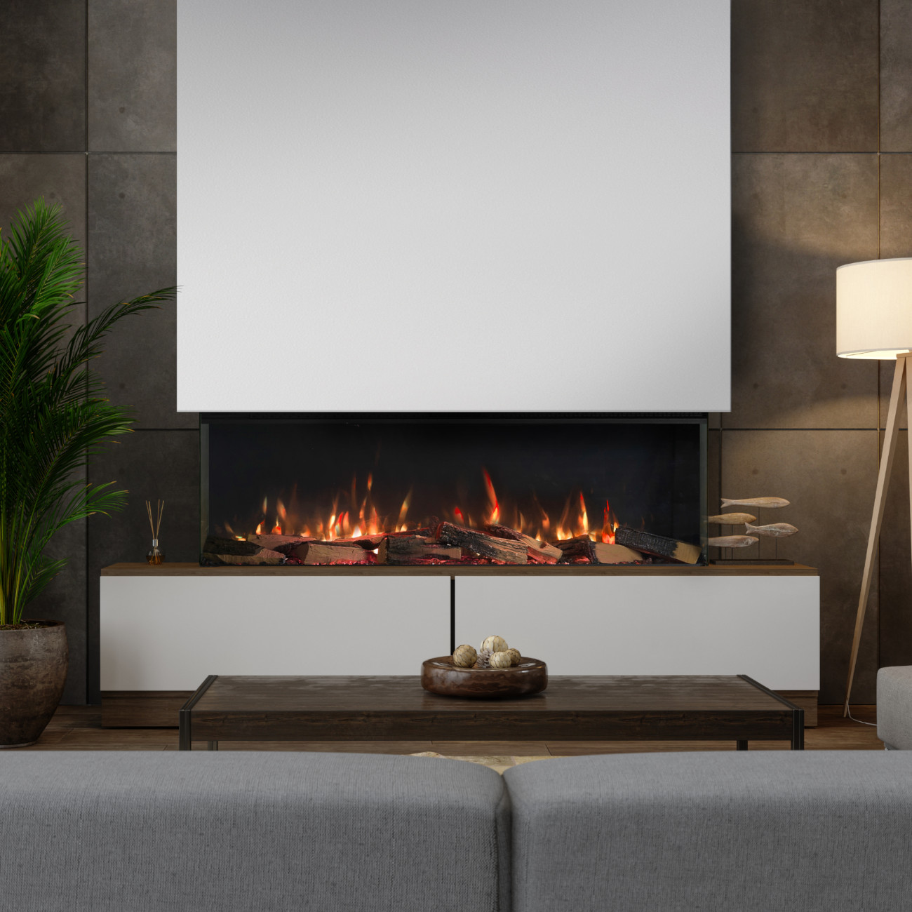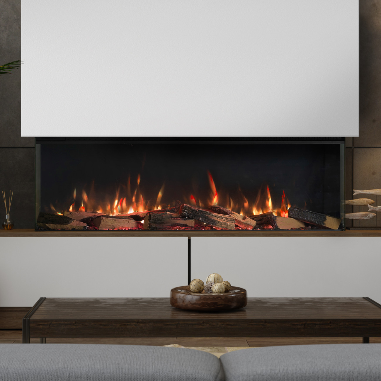 Da kein Schornstein, kein Rauchabzug und keine aufwendigen Brandschutzmaßnahmen erforderlich sind, kann der Elektrokamin nahezu überall installiert werden – ideal für moderne Wohnkonzepte.
