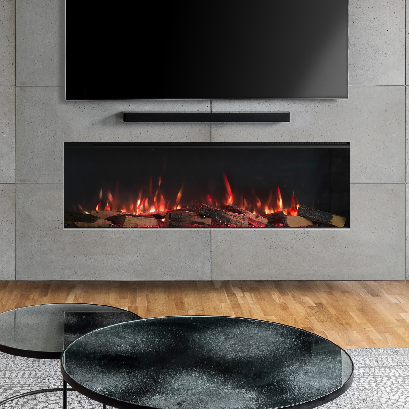 Die patentierte Methode zur Erzeugung beweglicher Flammen, kombiniert mit ultrarealistischen glühenden Holzscheiten und authentischen Soundeffekten, erzeugt eine beeindruckend realistische Feuerillusion. Dadurch entsteht die Atmosphäre eines echten Kaminfeuers – ganz ohne Rauch, Holz oder aufwendige Installation.