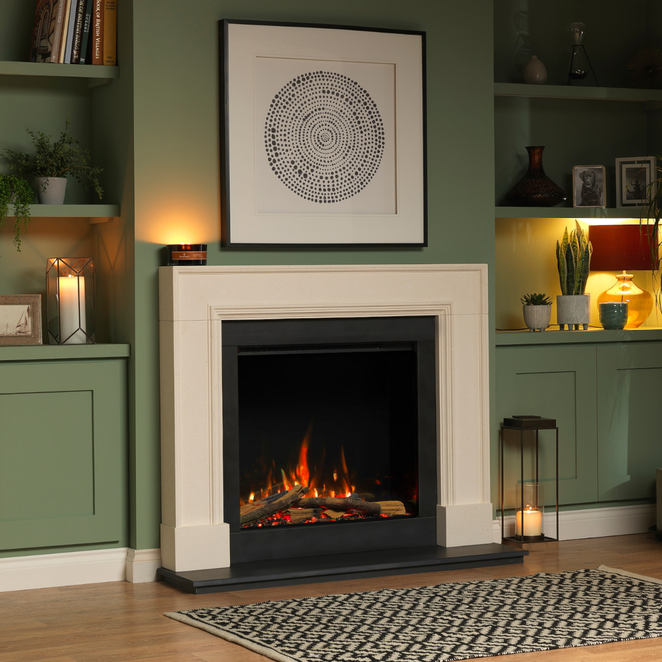 Jedes Set wird in Großbritannien aus lokal bezogenen Materialien gefertigt und ist ein echtes Unikat. Die Holzscheite sind zu einem leicht installierbaren Element kombiniert und verleihen dem Kamin eine besonders natürliche Optik.