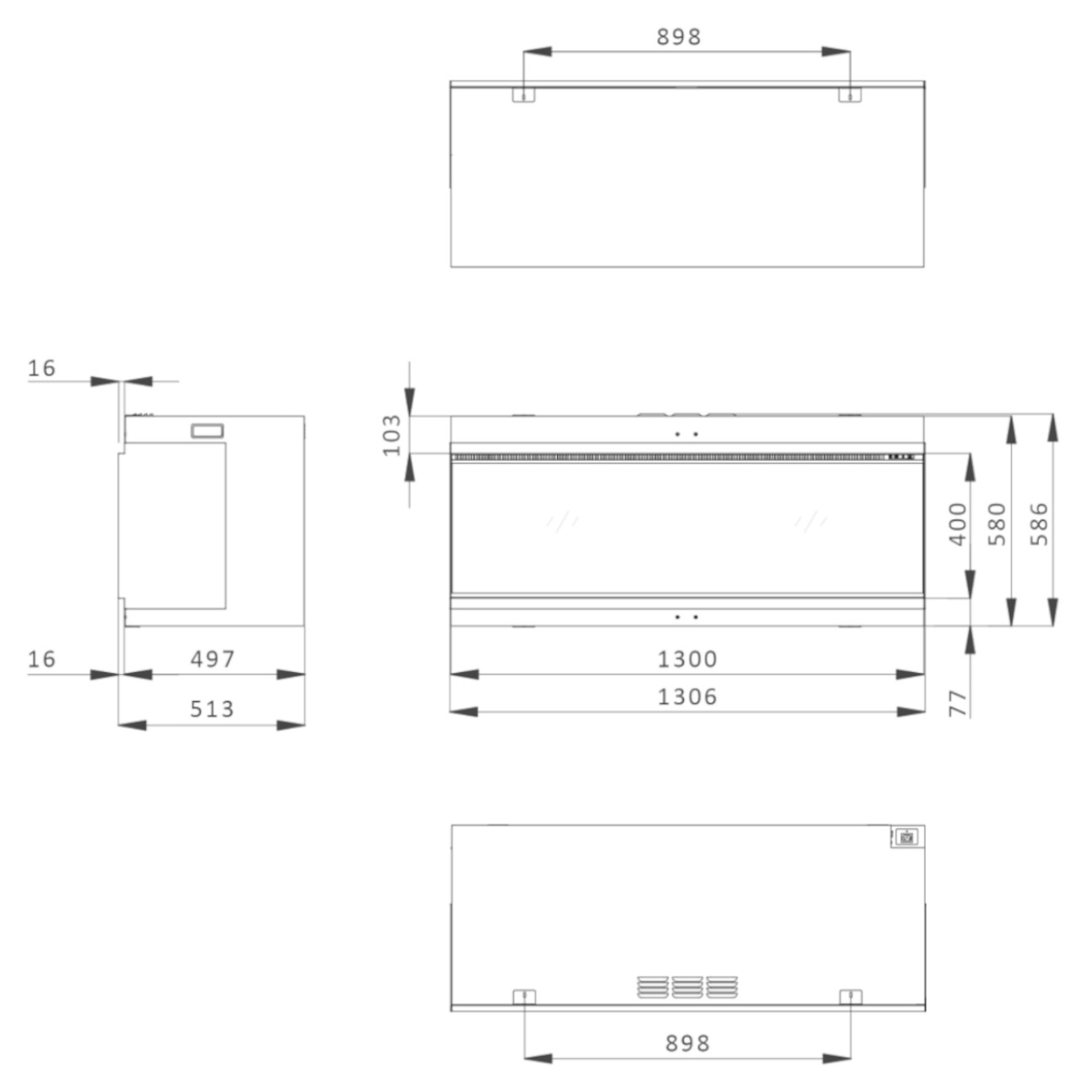 Dank des 4-in-1 Designs lassen sich die seitlichen Blenden abnehmen. Dadurch kann der Elektrokamin flexibel installiert werden als:
