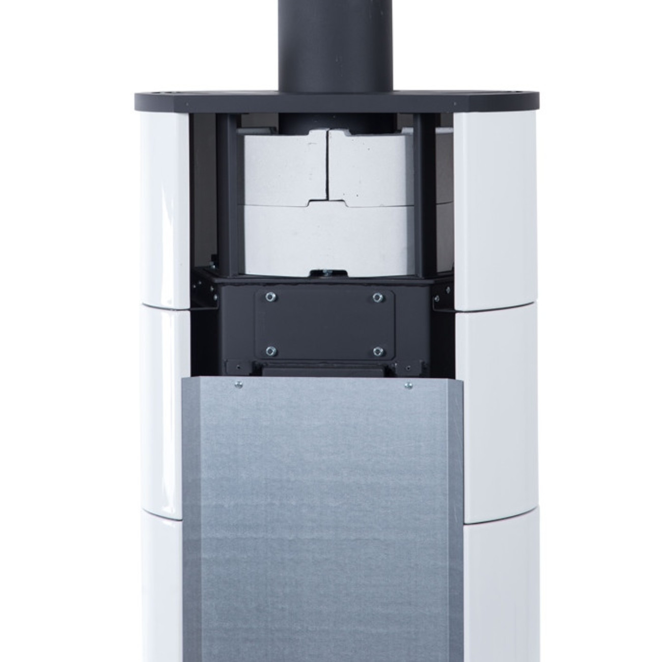 Optional lässt sich der Kaminofen zusätzlich mit Speichersteinen (bis zu 42,5 kg) ausstatten. Diese bestehen aus zwei oberen Speicherringen und vier seitlichen Speichersteinen. So gibt der Ofen die Wärme auch nach Erlöschen des Feuers über mehrere Stunden ab – bis zu 7 Stunden Wärmespeicherung in einem gut isolierten Gebäude.