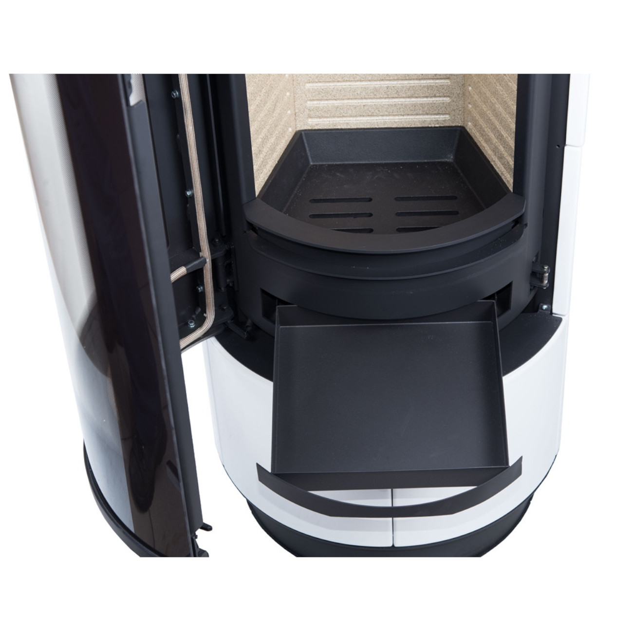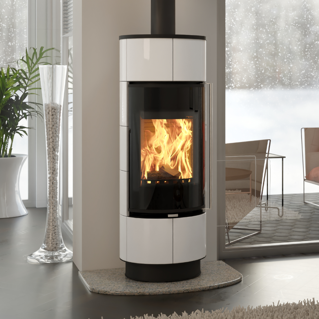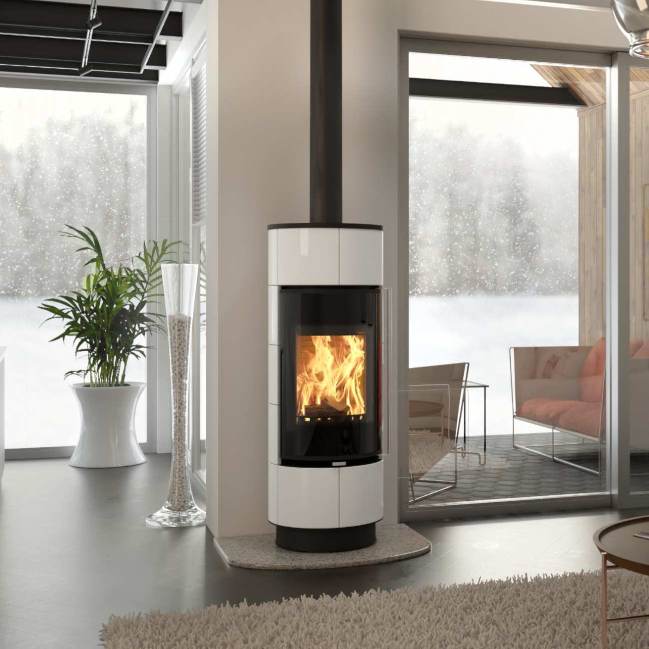 Der Atika Keramik Extra Weiß ist ein hochwertiger Kaminofen mit 7 kW Nennwärmeleistung, einer großen runden Sichtscheibe und eleganter weißer Keramikverkleidung. Die Design-Ganzglastür mit 2-Fach Verriegelung sowie die dezente seitliche Griffstange, die auch während des Betriebs kühl bleibt, machen diesen Kaminofen zum Blickfang in jedem modernen Wohnraum.