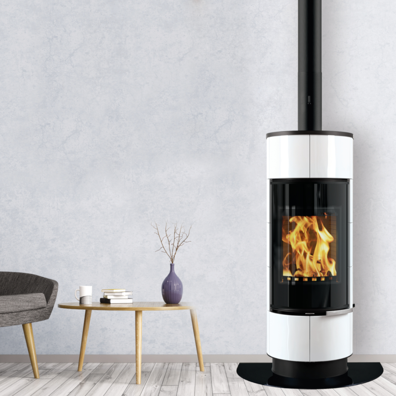 Der Atika Keramik Plus Weiß ist ein hochwertiger Kaminofen mit 7 kW Nennwärmeleistung, einer großen runden Sichtscheibe und eleganter weißer Keramikverkleidung. Die Design-Vollglastür mit 2-Fach Verriegelung sowie der dezente Griff rechts unterhalb der Brennkammer, der auch während des Betriebs kühl bleibt, machen diesen Kaminofen zum Highlight in jedem modernen Wohnraum.