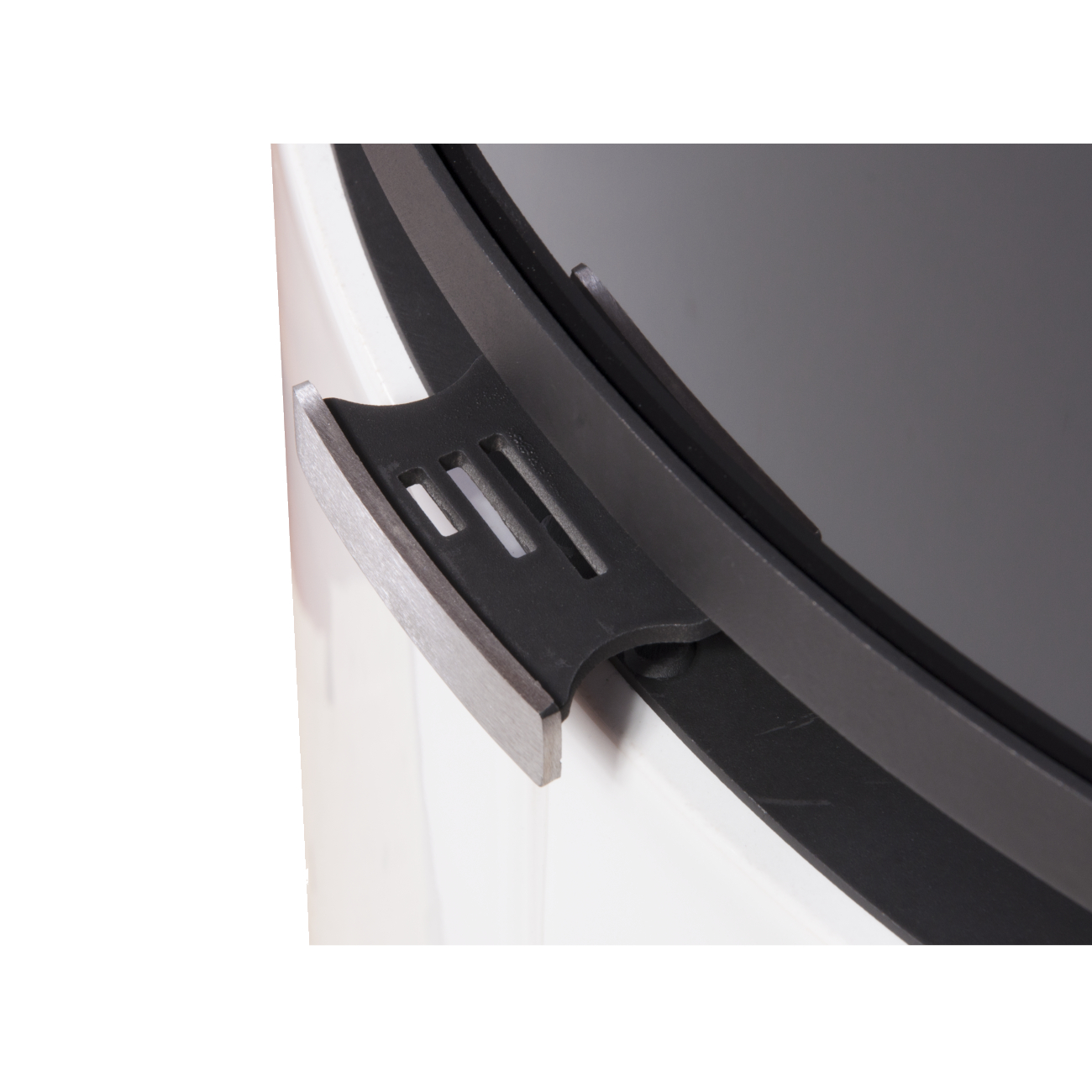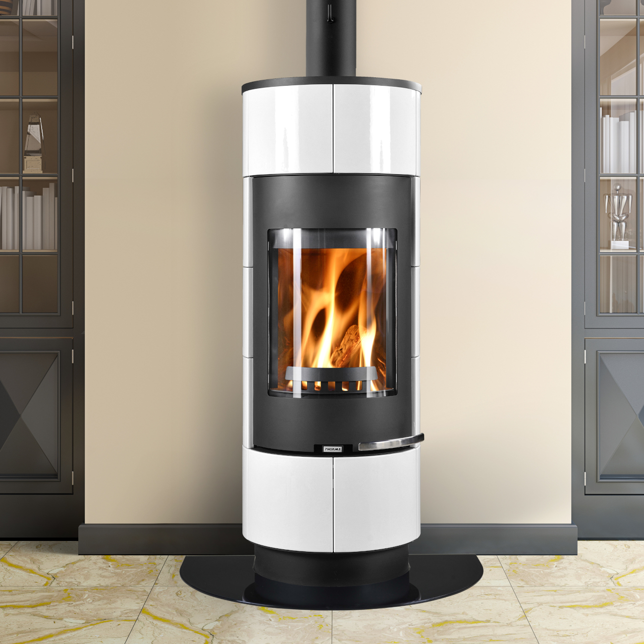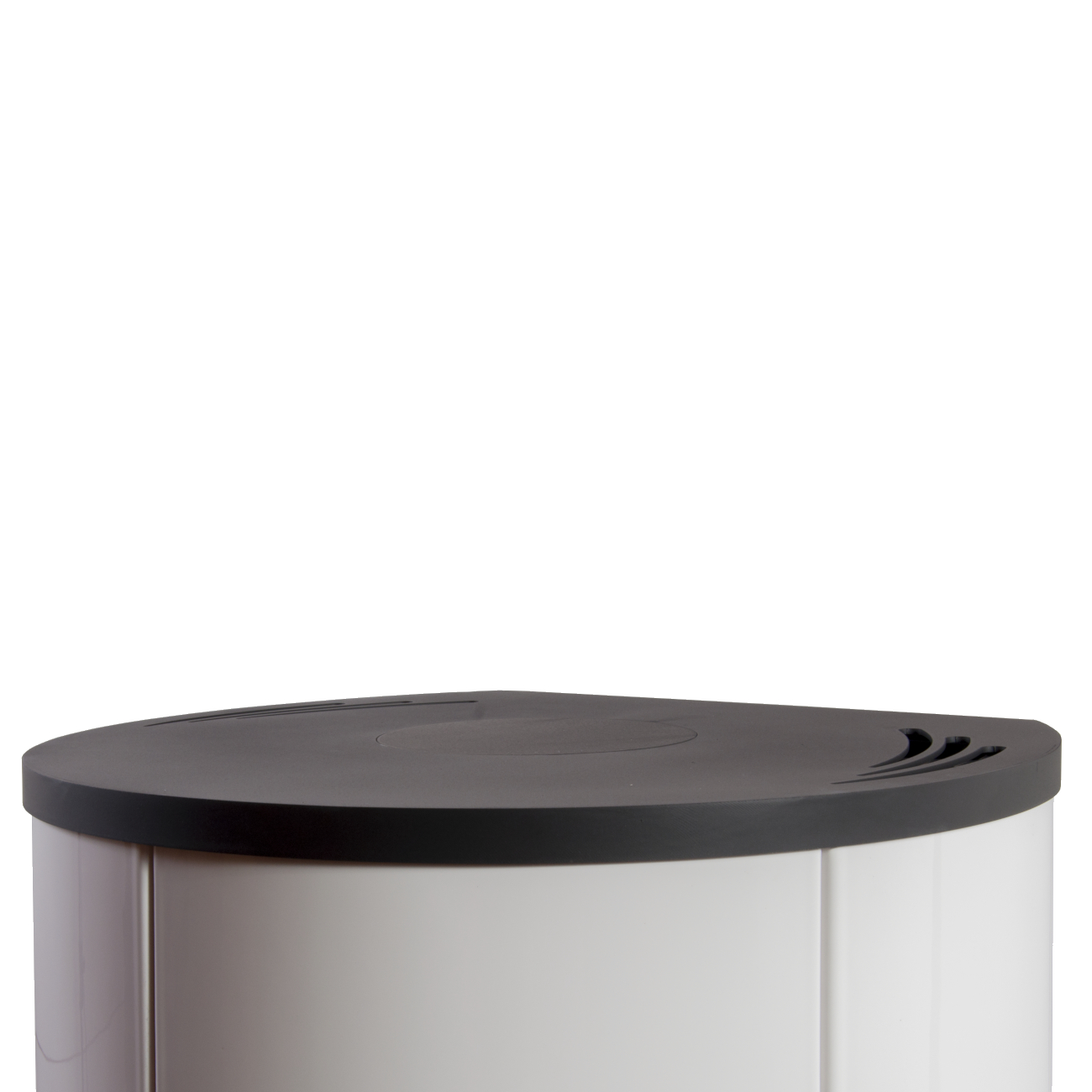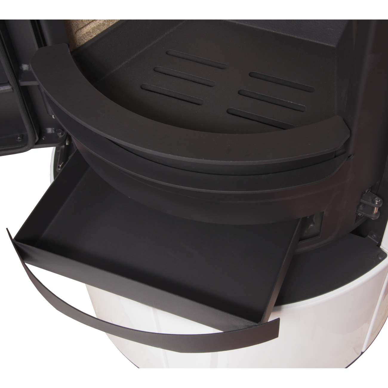 Der Atika Keramik Speicher-Kaminofen Weiß ist ein hochwertiger Kaminofen mit 7 kW Nennwärmeleistung, einer großen runden Sichtscheibe und einer eleganten Keramikverkleidung in Weiß. Die Design-Tür mit stabilem Stahlrahmen, bei der die Glasscheibe innen anliegt, sowie der dezente Griff rechts unterhalb der Brennkammer, der auch während des Betriebs kühl bleibt, machen diesen Kaminofen zum Blickfang in jedem modernen Wohnraum.