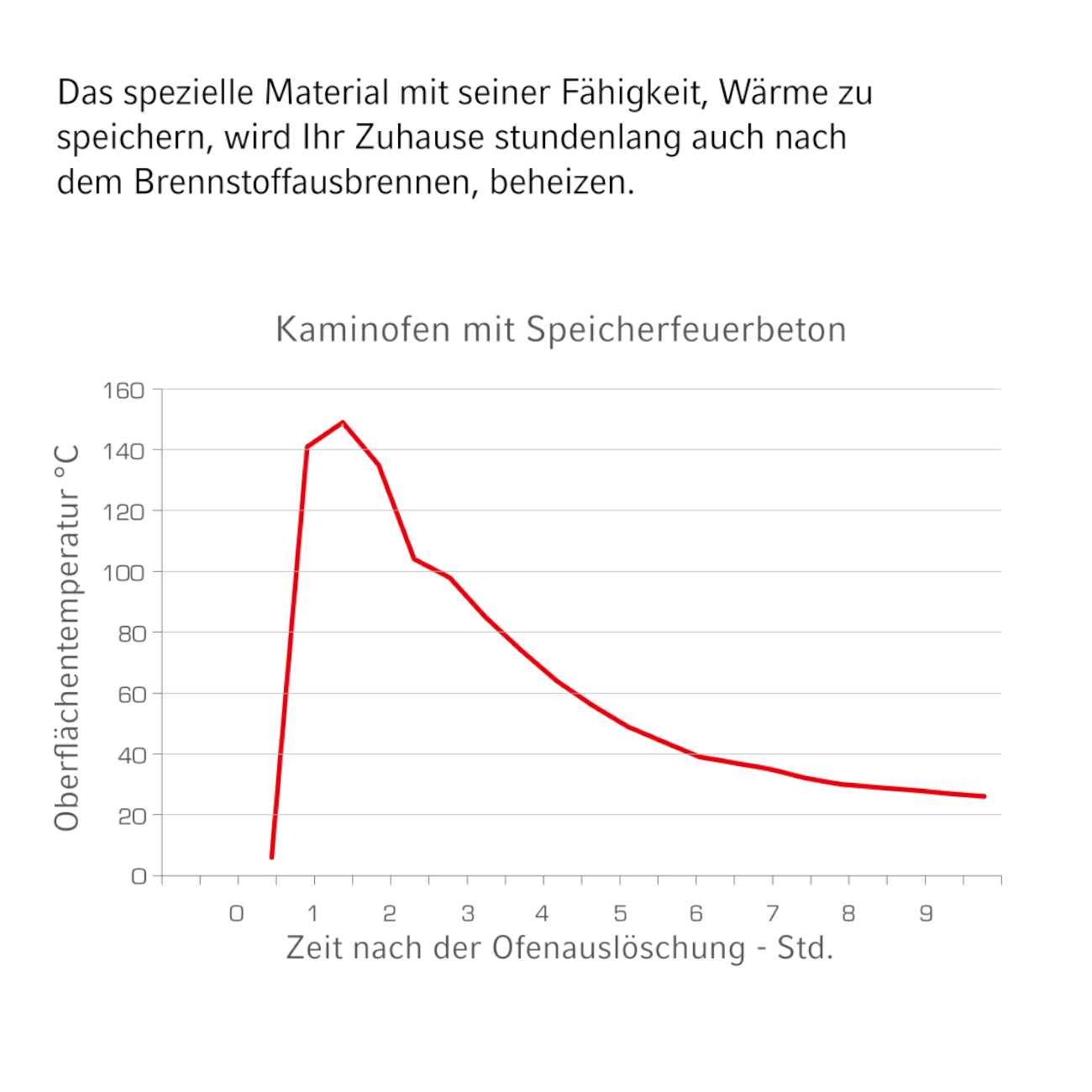 - Wärmespeicherfähigkeit: Ja – Natursteine, und optional mit zusätzlich Speicherbeton, geben über Stunden Wärme ab